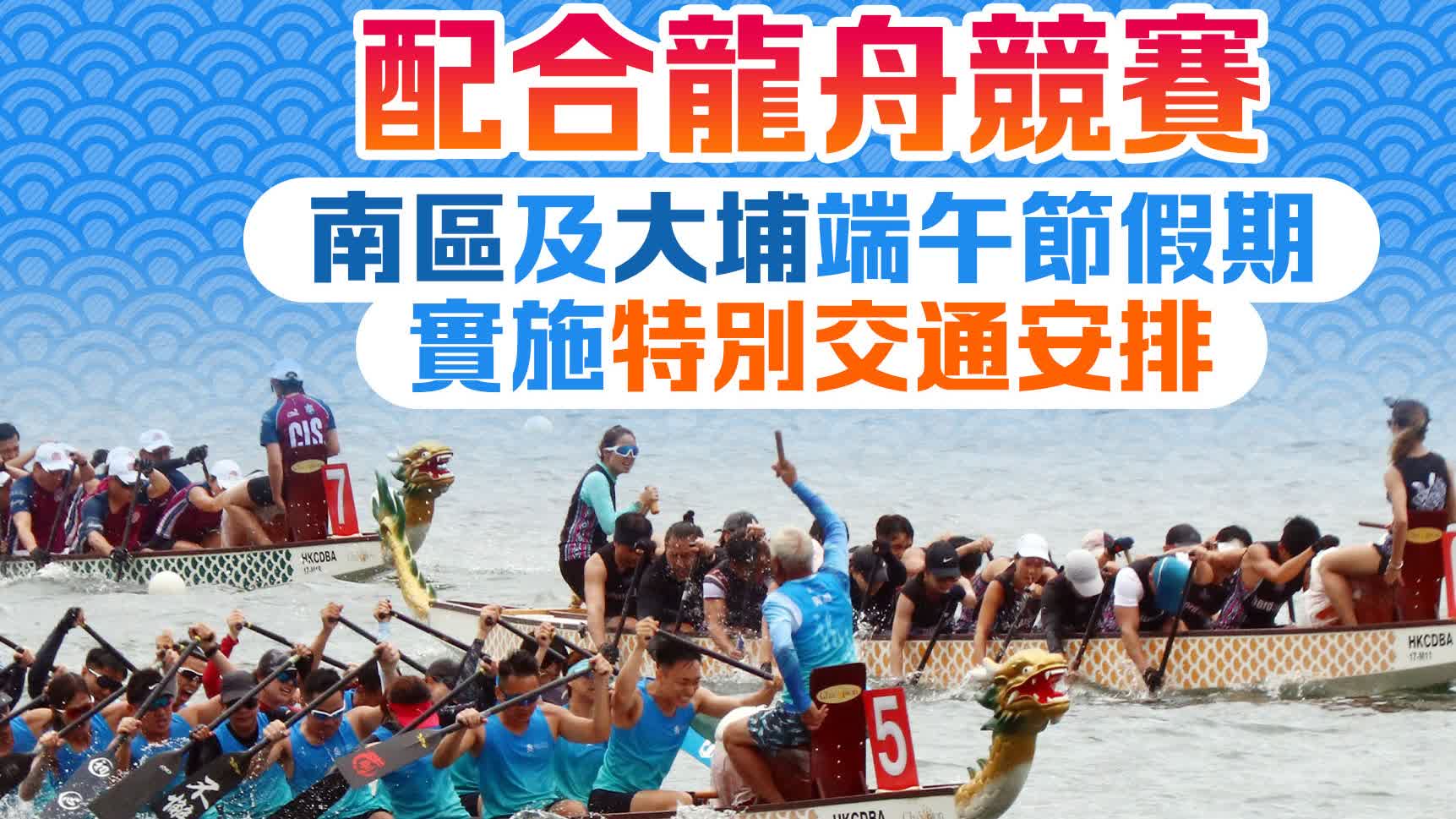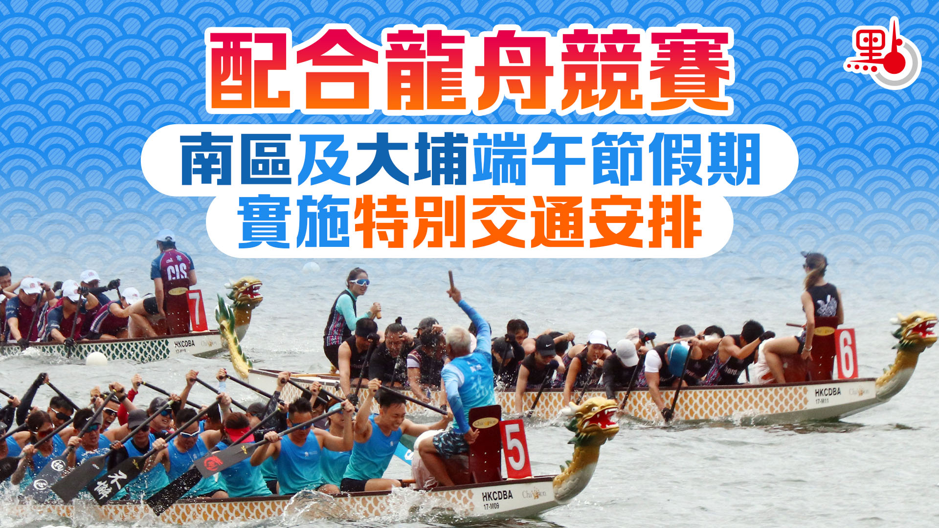 大公文匯全媒體報道,運輸署今日(28日)提醒市民,南區和大埔將在端午節假期(5月30日至31日)實施以下特別交通及運輸安排,以配合龍舟競賽的舉行。