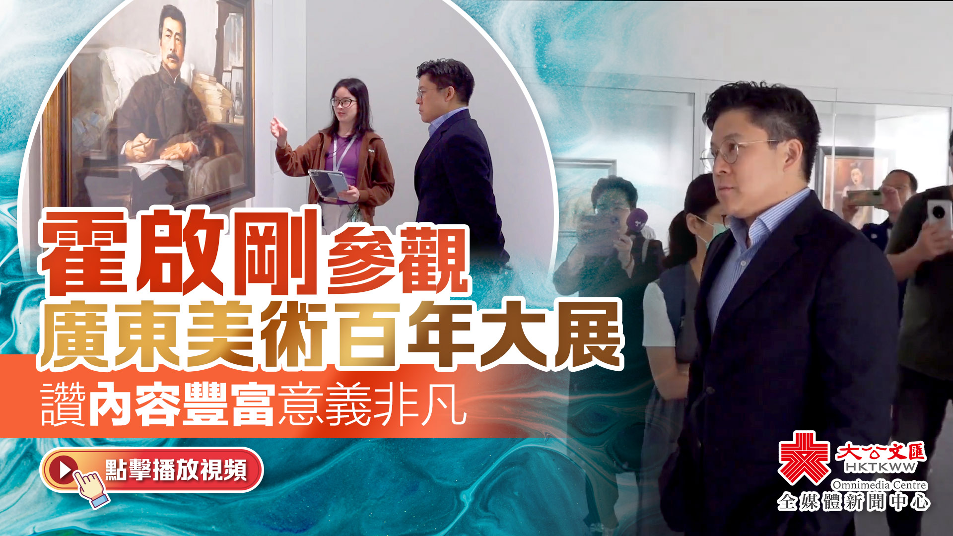 大公文匯全媒體報道,「其命惟新─廣東美術百年大展(香港)」自22日起在香港會展中心舉行。展覽在香港引發各界熱切關注,港區全國人大代表、立法會議員霍啟剛今日(5月28日)亦到場參觀,並稱讚展覽「內容豐富、意義非凡」,呼籲市民前來欣賞。