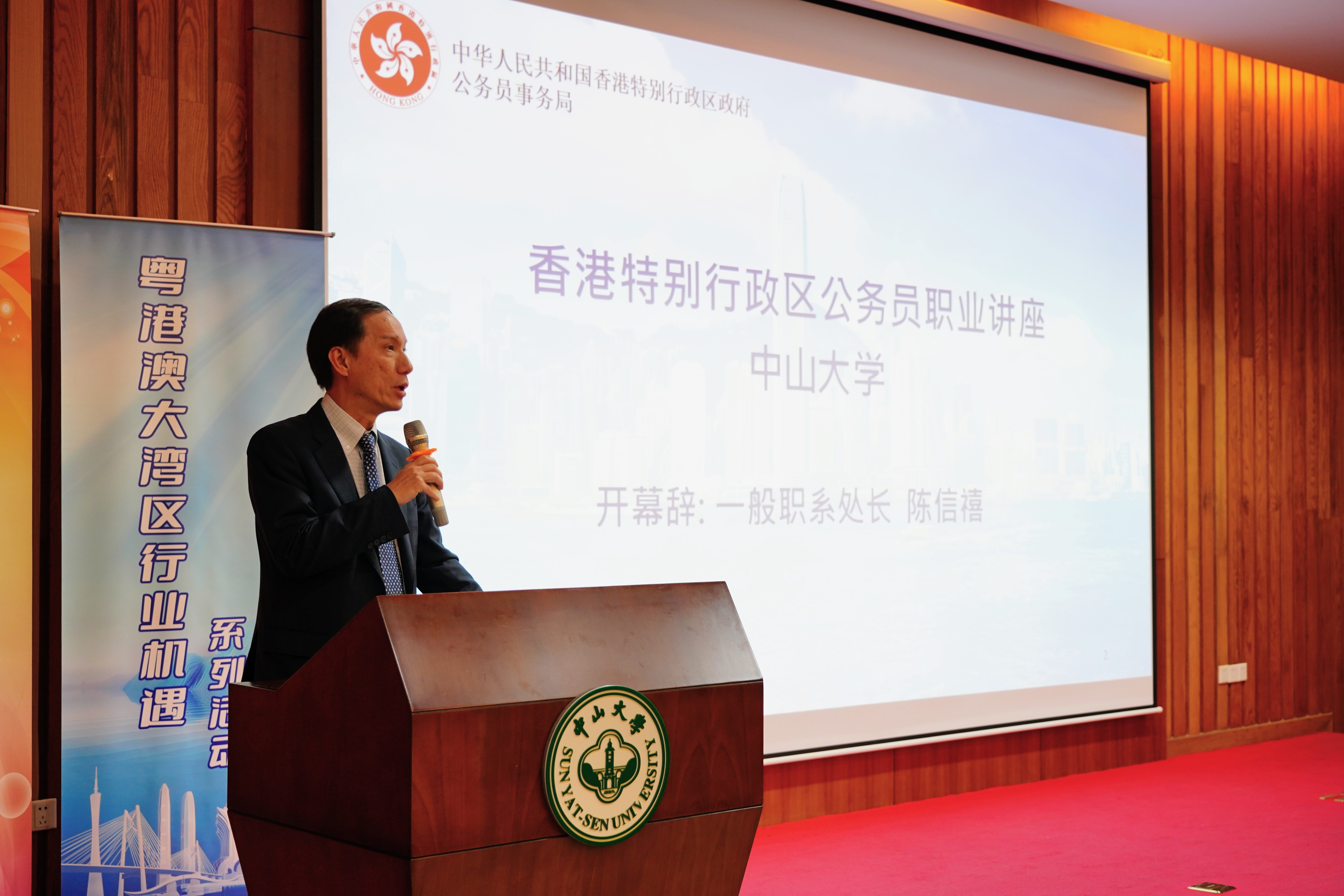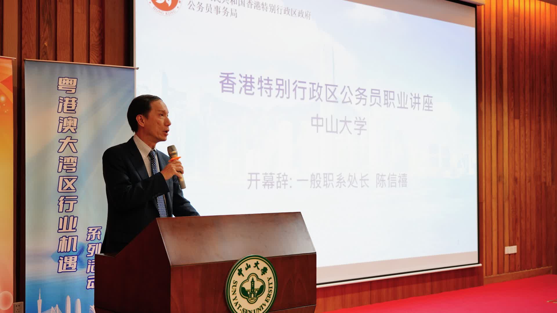 公務員事務局一般職系處長陳信禧於五月二十七日在中山大學講座上表示,特區政府公務員事務局自二○二三年開始派員前往內地多間大學及特區政府駐當地辦事處,向香港學生及居住在內地的港人介紹特區政府不同的就業機會,而去年五月更首次聯同多個部門到廣東和福建多間大學舉行招聘講座。介紹工作已見成效,在內地大學畢業的香港學生投考公務員人數持續上升。他鼓勵有志服務社會的香港學生及早裝備自己,投身公務員行列。