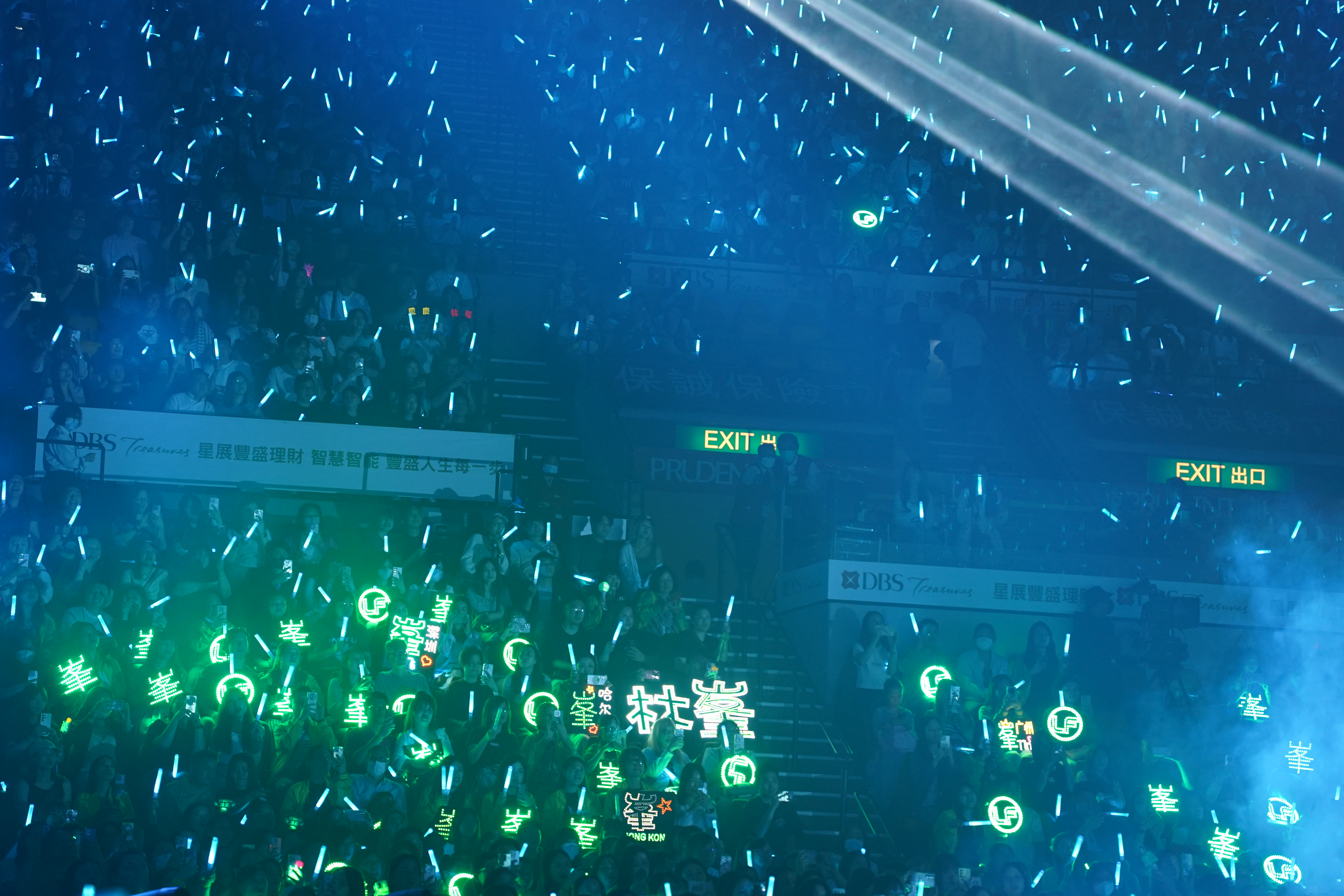 林峯早前說會拉近與觀眾距離,今晚就在移動升降機的搭載下,於觀眾席中後方現身,跟坐在「山頂」的朋友打招呼,照顧到後排觀眾,更言「你坐在哪個位置,都是我的VIP」。
