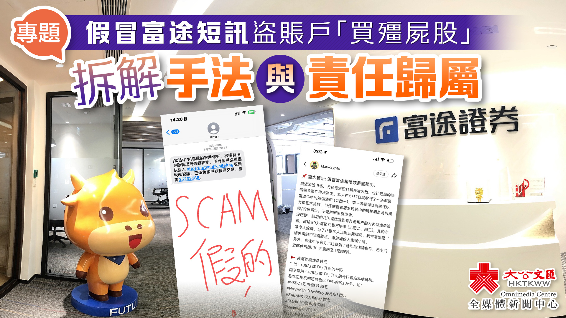 - 看號碼:香港正規機構短訊以「#機構名」開頭(如#FUTU),但「+852」開頭或無標記必是詐騙;