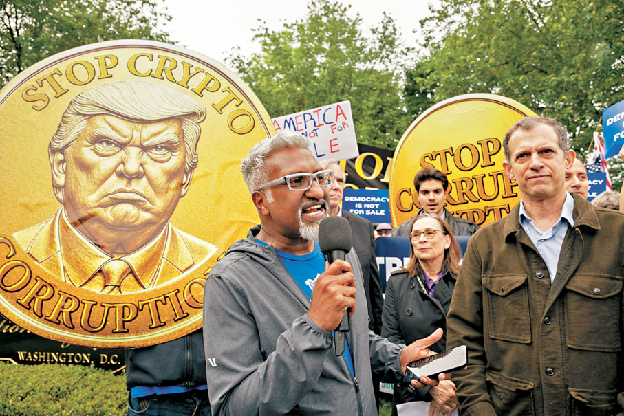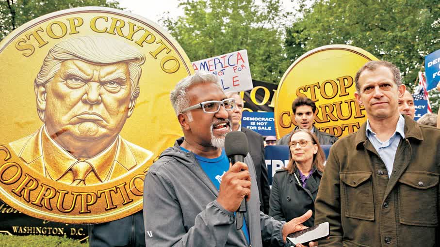 特朗普第二任期以來大量推行放寬加密貨幣監管政策,其家族企業則大舉投資加密貨幣謀利。政客資產監督組織「國家民主捍衛者基金」上月發表的報告顯示,截至今年3月中,特朗普家族的加密貨幣投資價值達29億美元(約227億港元),該家族的加密貨幣投資僅從去年開始,數字非常驚人。