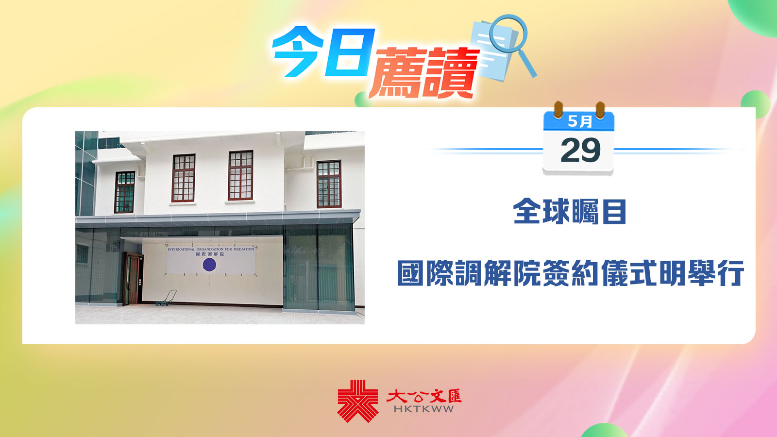 香港文匯報報道。《關於建立國際調解院的公約》(公約)簽署儀式,將於明天(30日)在香港舉行,中共中央政治局委員、外交部長王毅來港出席儀式。香港特區政府律政司司長林定國昨日為大公文匯撰文《香港躍升國際調解樞紐》表示,按公約將成立的國際調解院,補充了現行國際爭端解決機制一塊短板,提供一個新的國際法治公共產品,是推進以調解方式解決國際爭端的里程碑。點擊閱讀更多>>