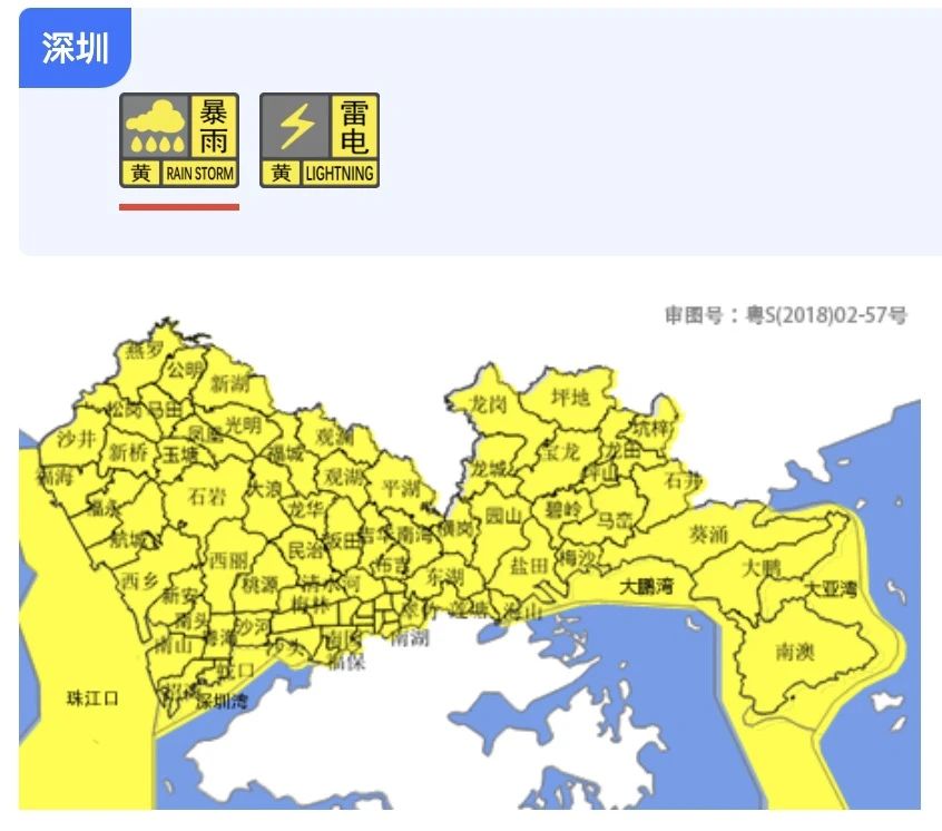 大公文匯全媒體報道,深圳市氣象台今日(29日)下午2時10分將分區暴雨黃色預警信號擴展至全市,預計全市未來6小時將出現50毫米左右降水,全市處於暴雨戒備狀態。
