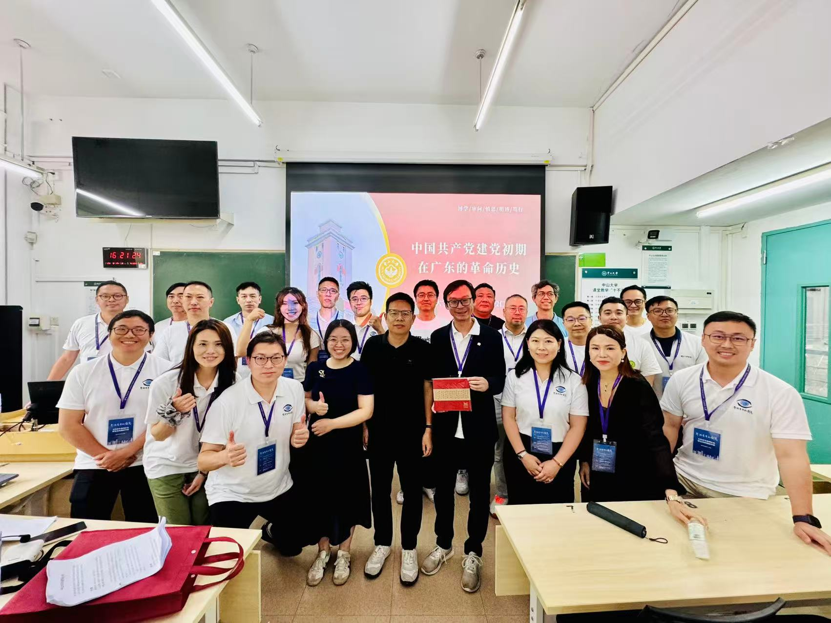參觀完校園後,代表團走進教室,聽取中山大學馬克思主義學院的段仁波老師講授的《中國共產黨建黨初期在廣東的革命歷史》。通過學習「馬克思主義在廣東的早期傳播、廣東黨組織的創立與組織建設、工農運動的興起與革命動員、以及第一次國共合作與大革命的廣東經驗」等四個主題內容,代表團具體了解到廣東省和廣州市在中國民主革命歷史中的獨特地位、以及中國共產黨在推動第一次國共合作和大革命進程中的不懈努力和巨大貢獻!