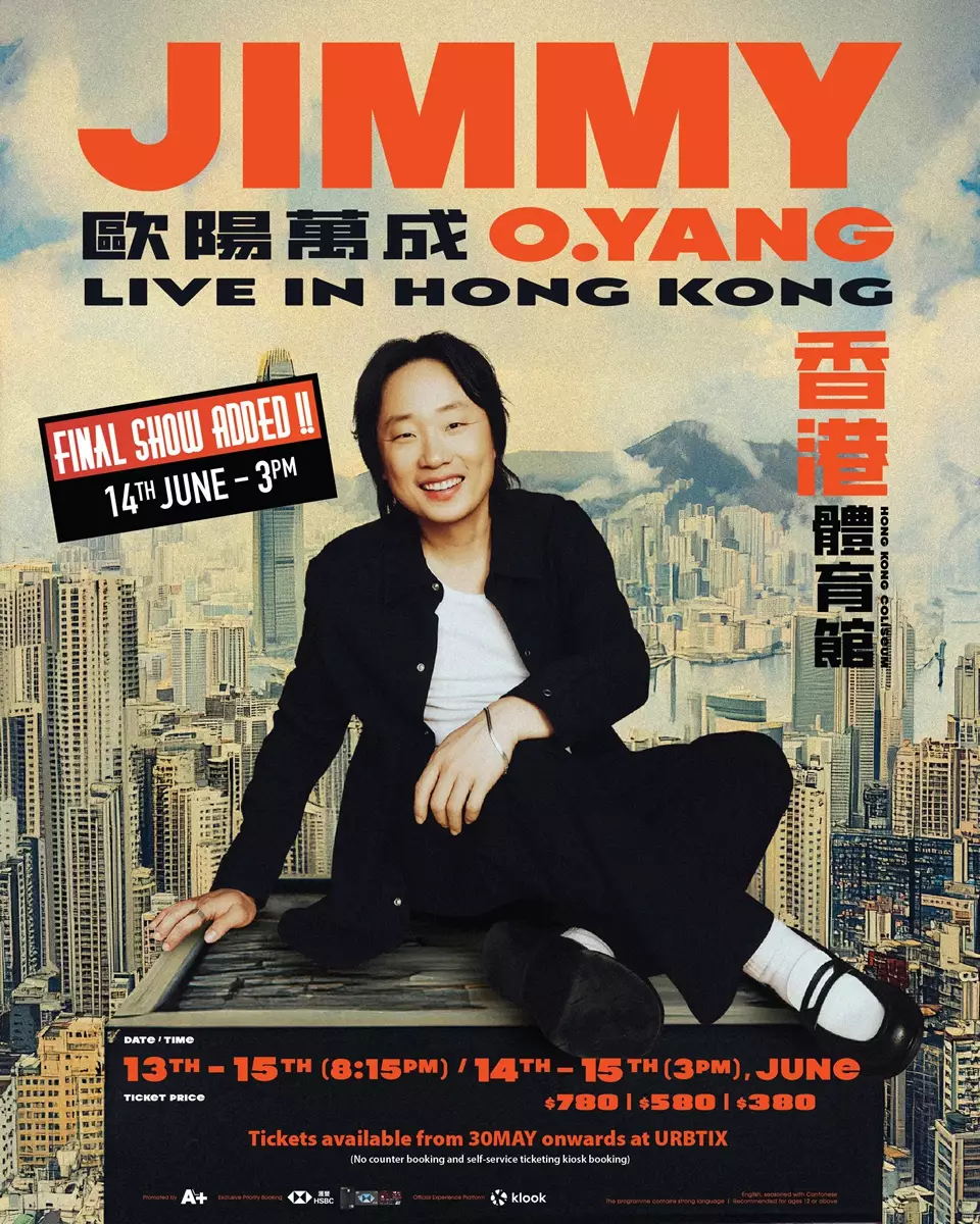 大公文匯全媒體報道,港產荷李活演員Jimmy O. Yang(歐陽萬成)將於6月降落紅館,首次進軍亞洲地區舞台舉行棟篤笑,掀起一片搶飛熱,早前連同加開,一共四場的門票早已售罄。近日Jimmy O. Yang本尊宣布終極加場喜訊,安排6月14日加開日場定在下午3時開Show,門票將於明天(5月30日)早上10時起透過城市售票網公開發售。