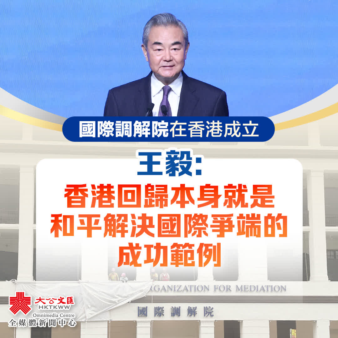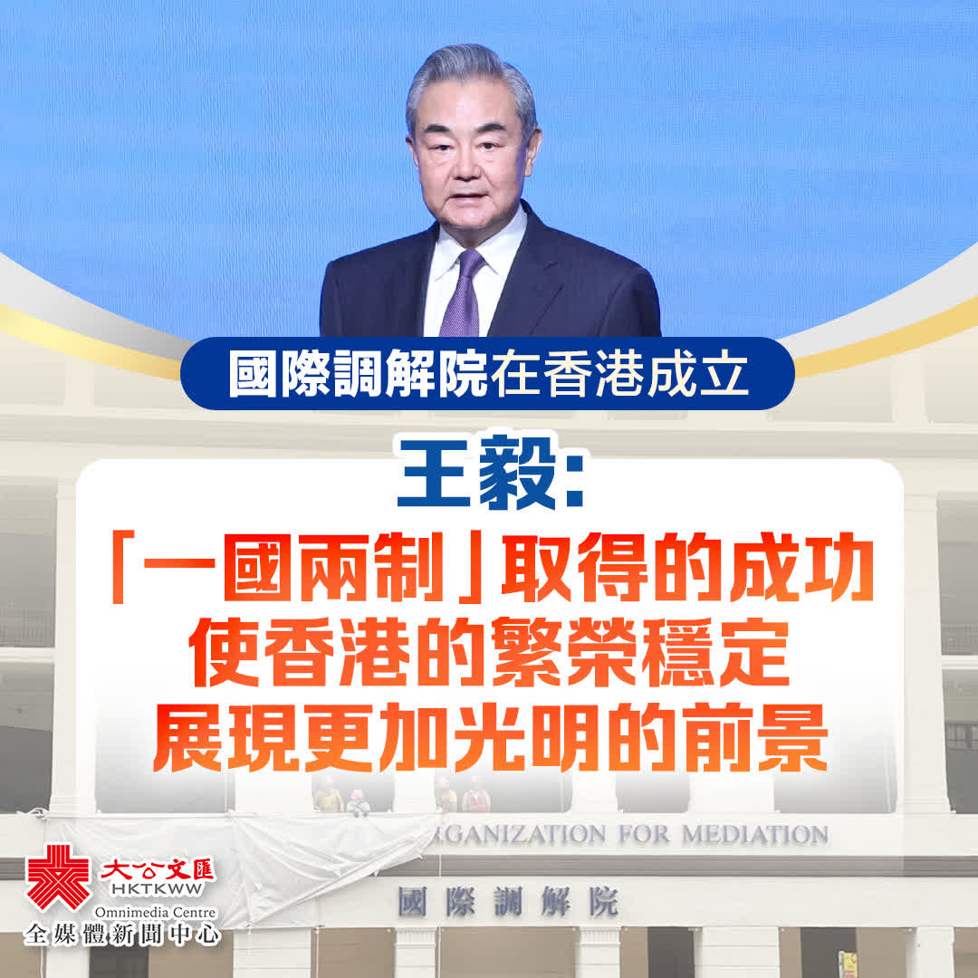 王毅對香港特區政府關於調解院籌建工作的大力支持表示感謝。