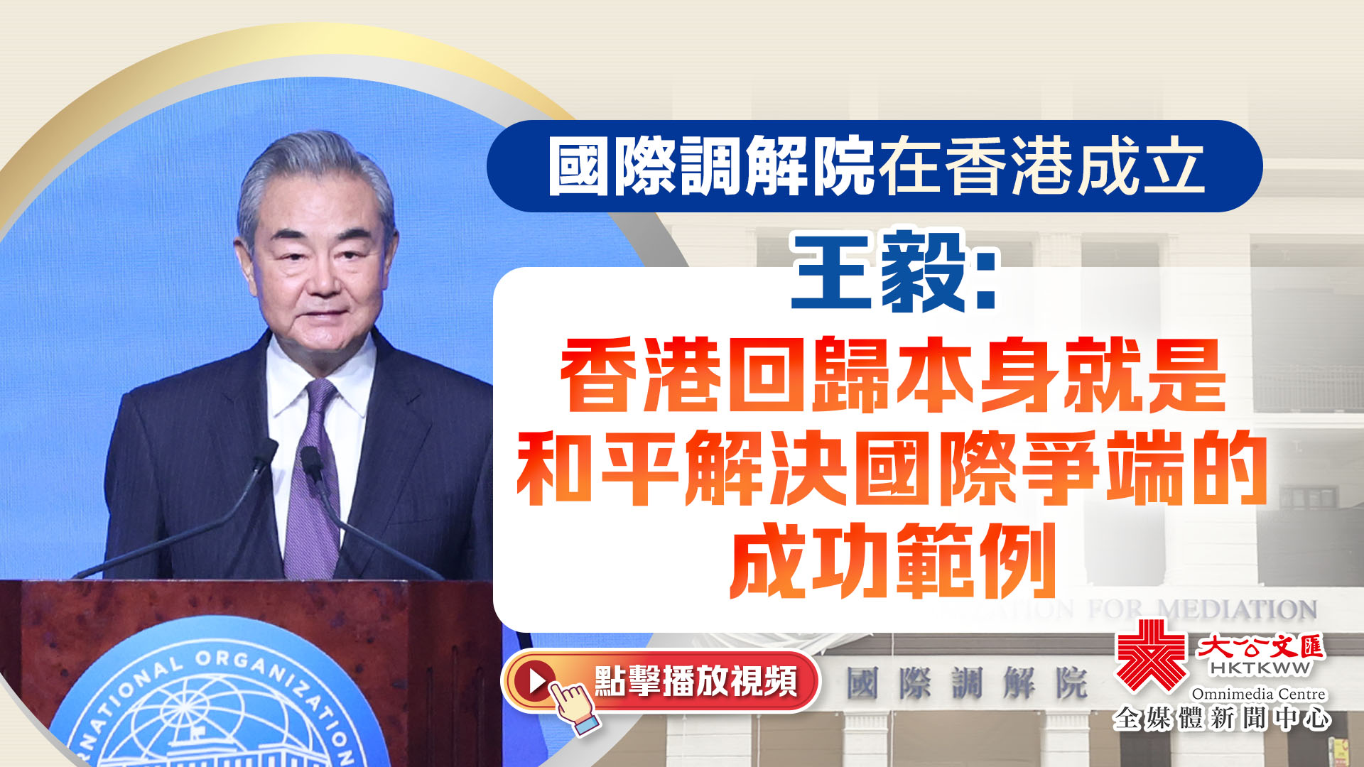 大公文匯全媒體報道,中共中央政治局委員、外交部長王毅今日(30日)出席《關於建立國際調解院的公約》簽署儀式。王毅致辭表示,香港回歸本身就是和平解決國際爭端的成功範例。