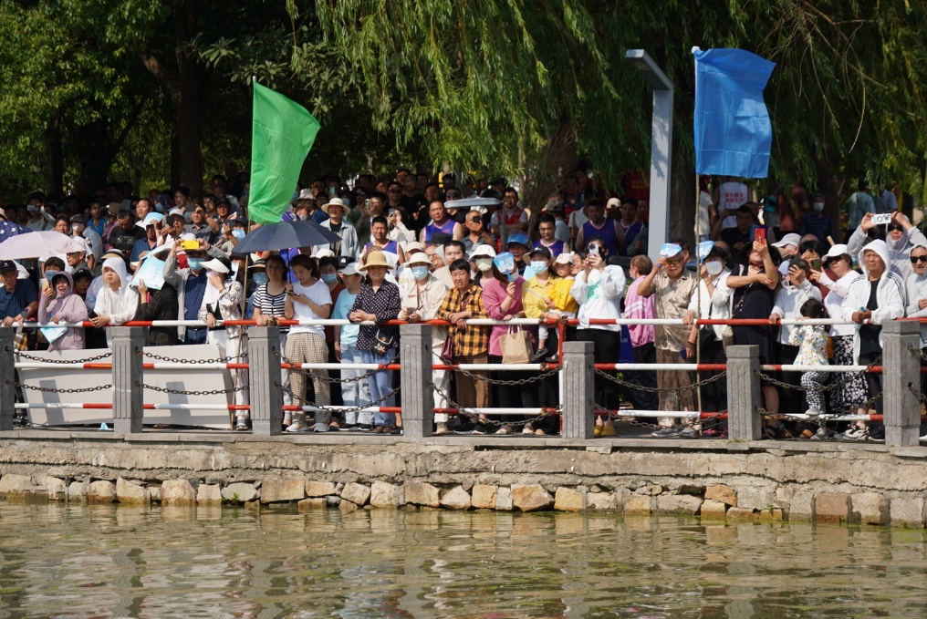 上午9點,鑼鼓聲中,鼓槌翻騰,舞者身着綵衣,在水上舞台中央騰挪跳躍,瞬間點燃全場熱情,龍舟賽正式開賽。據了解,迎端午、賽龍舟的習俗,在五河縣由來已久。早在清朝時期,人們就有端午節前擊鼓競渡的習俗,後經過幾代人的傳承,這項活動已成為該縣的文化特色,成為了淮河流域傳統體育活動的重要典型代表,於2018年獲評安徽省十大體育品牌賽事之一,2022年上榜安徽省非物質文化遺產名錄。