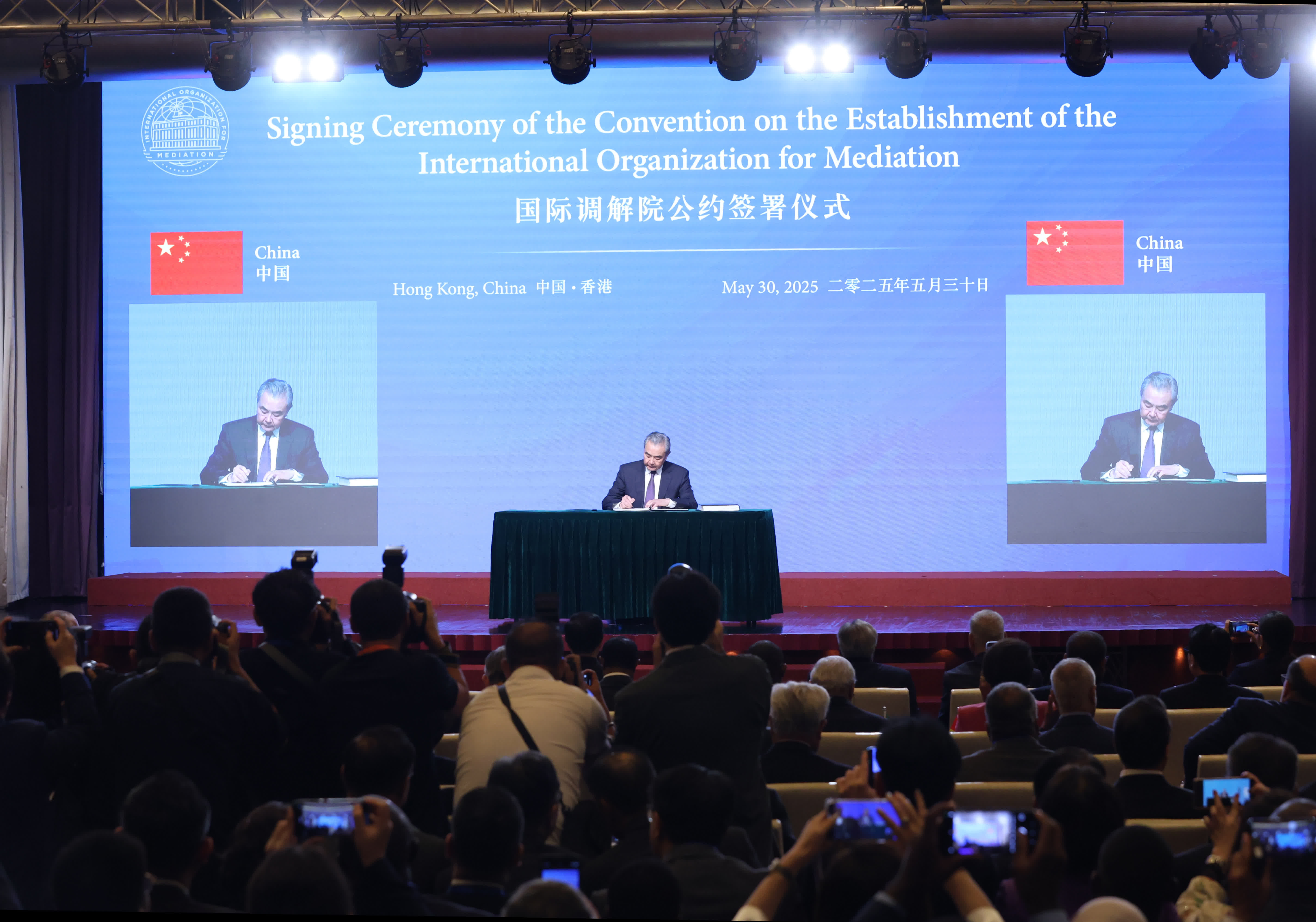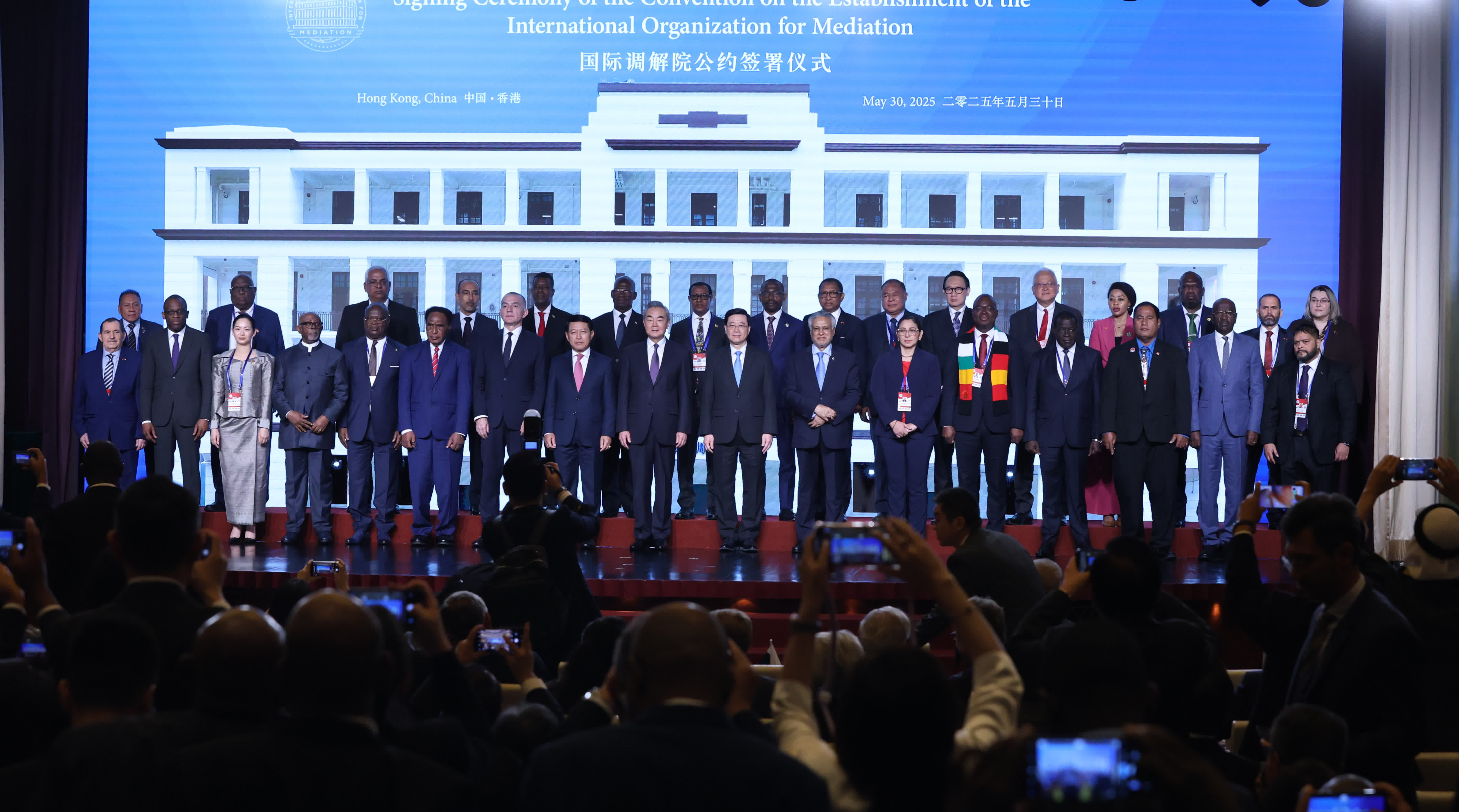 大公文匯全媒體報道,今日(5月30日)上午,國際調解院公約簽署儀式在中國香港舉行。中共中央政治局委員、外交部長王毅出席簽署儀式,並率先代表中國簽署。來自亞洲、非洲、拉美和歐洲85個國家和近20個國際組織的高級別代表約400人出席。33個國家現場簽署公約,成為創始成員國。主辦方表示,《公約》將繼續在香港和北京開放,供各國簽署。