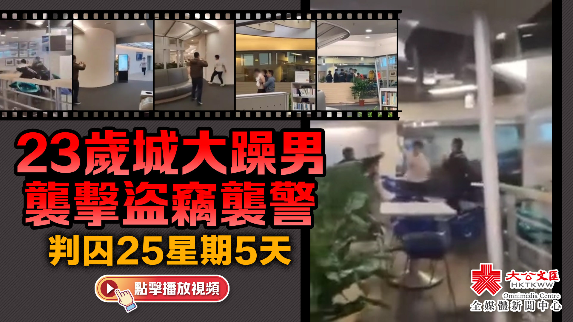 大公文匯全媒體報道,香港城市大學3月31日發生襲警案,一名23歲男學生,疑因被要求調低手機聲浪而突然發難,先與女研究員衝突,再襲擊飯堂職員及到場調查的警員,更將其中一名警員「撻生魚」,經一輪追捕後,最後被胡椒噴霧制服。涉案男生早前承認普通襲擊、盜竊、襲警等共6罪,今日(30日)在西九龍裁判法院被判入獄25星期5天。