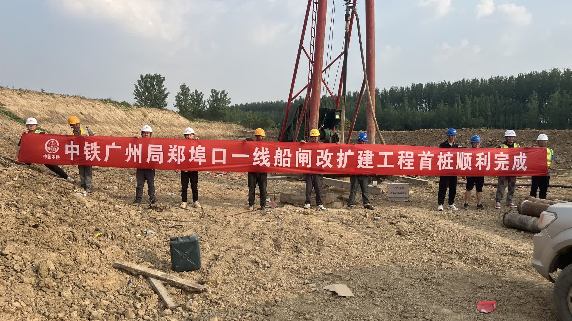 首樁告捷丨中鐵廣州局承建河南鄭埠口船閘項目首根錨地樁澆築完成