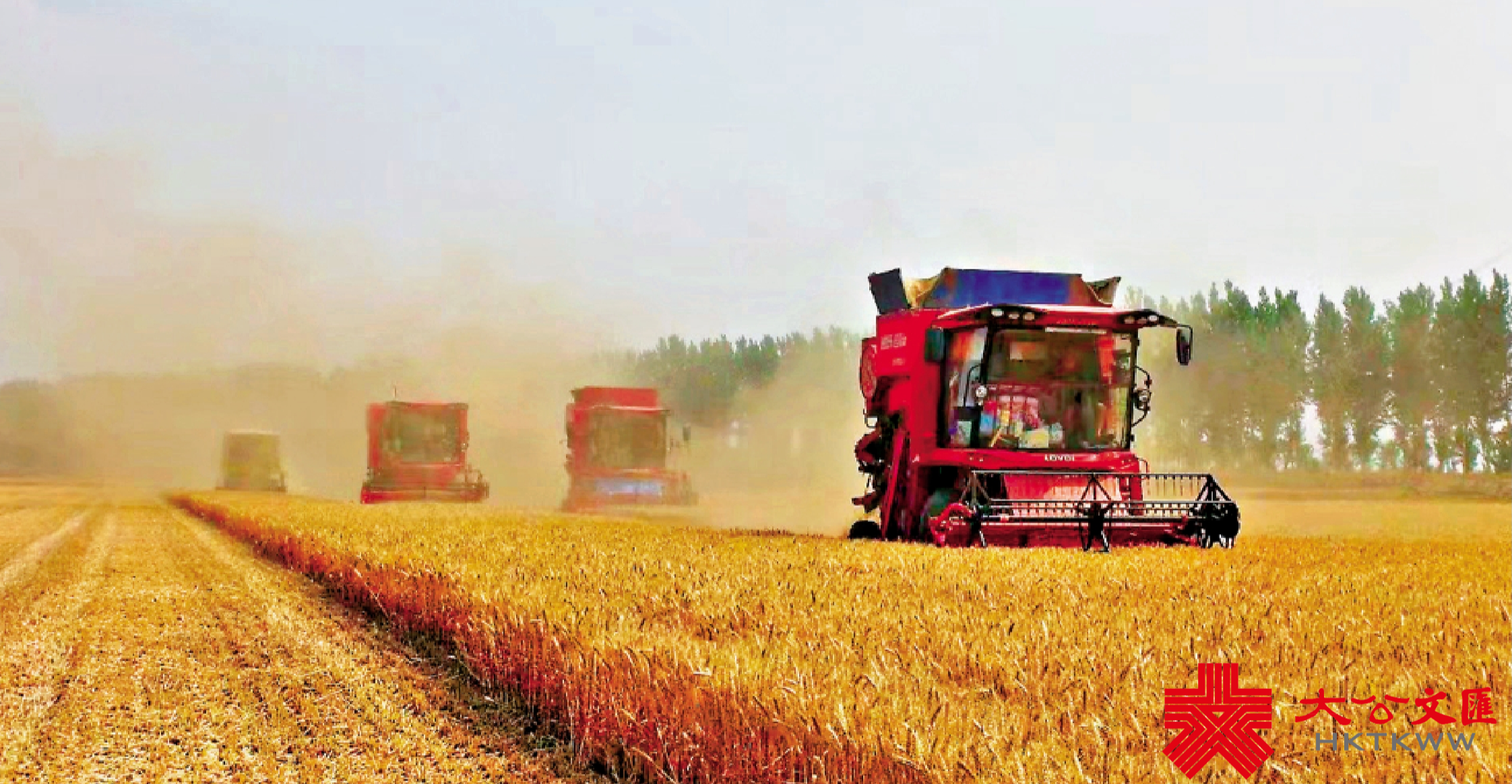 (大公報記者 劉蕊鄭州報道)風吹麥田千層浪,又是一年好「豐」景。5月28日,走進河南省商水縣天華農業示範基地,機器轟鳴,數台收割機正在各自的機收「責任田」裏撒歡,「吞」進一排排小麥,隨即「吐」出被粉碎的秸稈。收割機「吃飽」後,一股股麥流從卸糧筒中傾瀉而下,裝入運糧車。