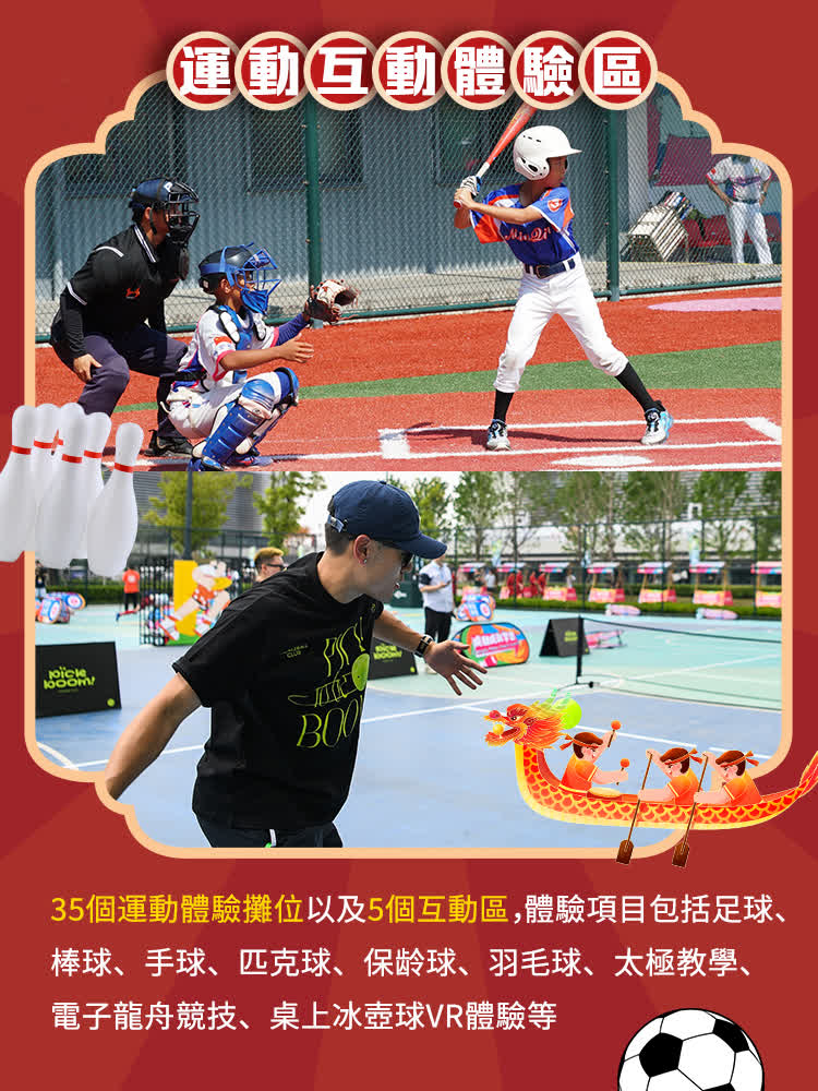 為迎接全運會熱潮,大會特別在維園草坪打造了「動感全運 樂聚維園」主題專區!35個趣味運動體驗攤位+5大互動遊戲區,等你來挑戰!