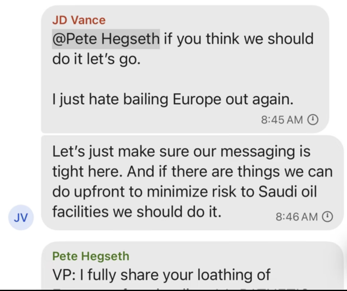 美國《大西洋》月刊總編傑弗里·戈德堡3月發文說,他被特朗普政府的國家安全團隊拉進了策劃襲擊也門胡塞武裝的聊天群中。在3月15日特朗普下令對也門胡塞武裝發動大規模空襲前幾個小時,美國防長赫格塞思在群聊中發布了有關該計劃的行動細節,「包括有關目標、美國將部署的武器和攻擊順序的信息」。