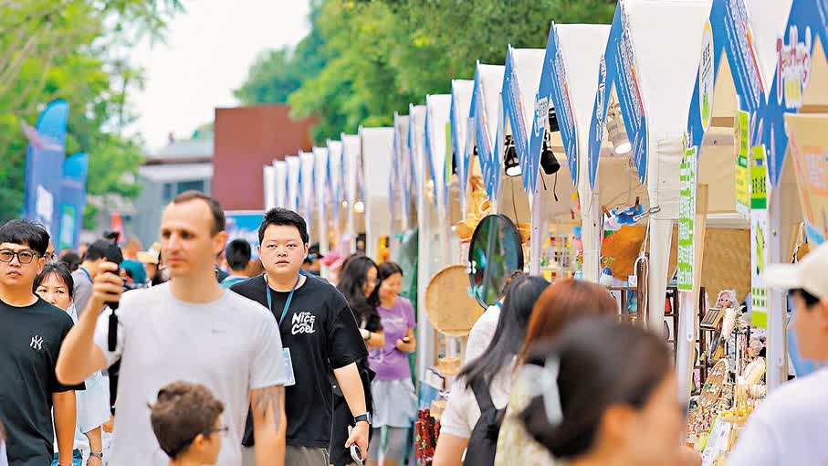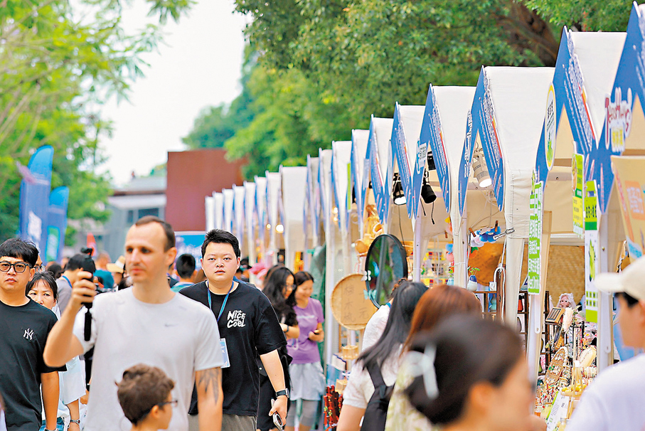 賽事期間同步掀起文化熱潮,南山大沙河的「端午拾趣」特色市集,成為市民深度體驗端午民俗與創意文創的熱門打卡地。市民在觀賽之餘,紛紛湧入市集,體驗套糉子、投壺、射五毒等互動遊戲,品嘗荔枝、糉子等應節美食,全方位感受端午傳統文化的魅力。來自美國的桑德拉在飄着糉子香氣的美食攤位前駐足,裹蒸糉、鹼水糉等不同口味的糉子,讓她大飽口福,咬下一口軟糯的裹蒸糉,連連稱讚:「太美味了!這獨特的味道,讓我一下子就記住了中國的端午節。」