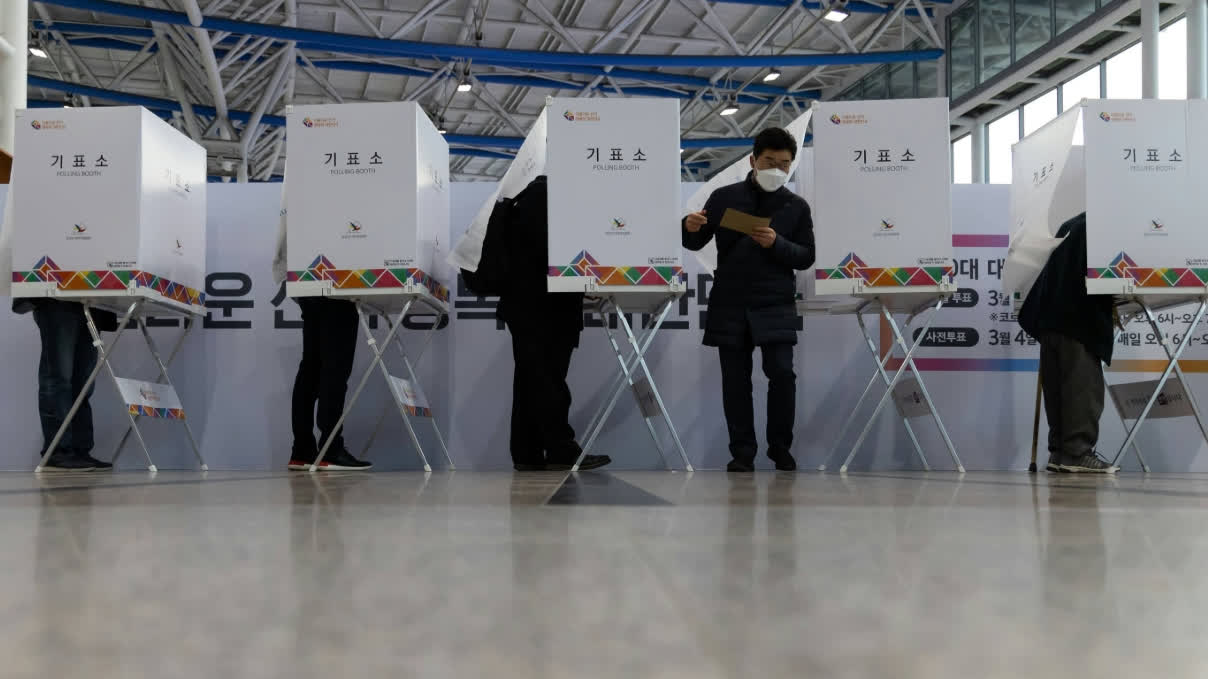 從當地時間5月29日早上六點起,韓國進行第21屆總統選舉「事前投票」(即提前投票),並於當地時間5月30日下午6時截止。選民投票熱情高漲,首日投票率更創下19.68%的歷史新高。據韓國國家選舉委員會統計,為期兩天的提前投票結束後,韓國全國超4439萬名登記選民中,超過1542萬人完成提前投票,投票率達34.74%,低於2022年大選期間創下的36.93%的最高紀錄。