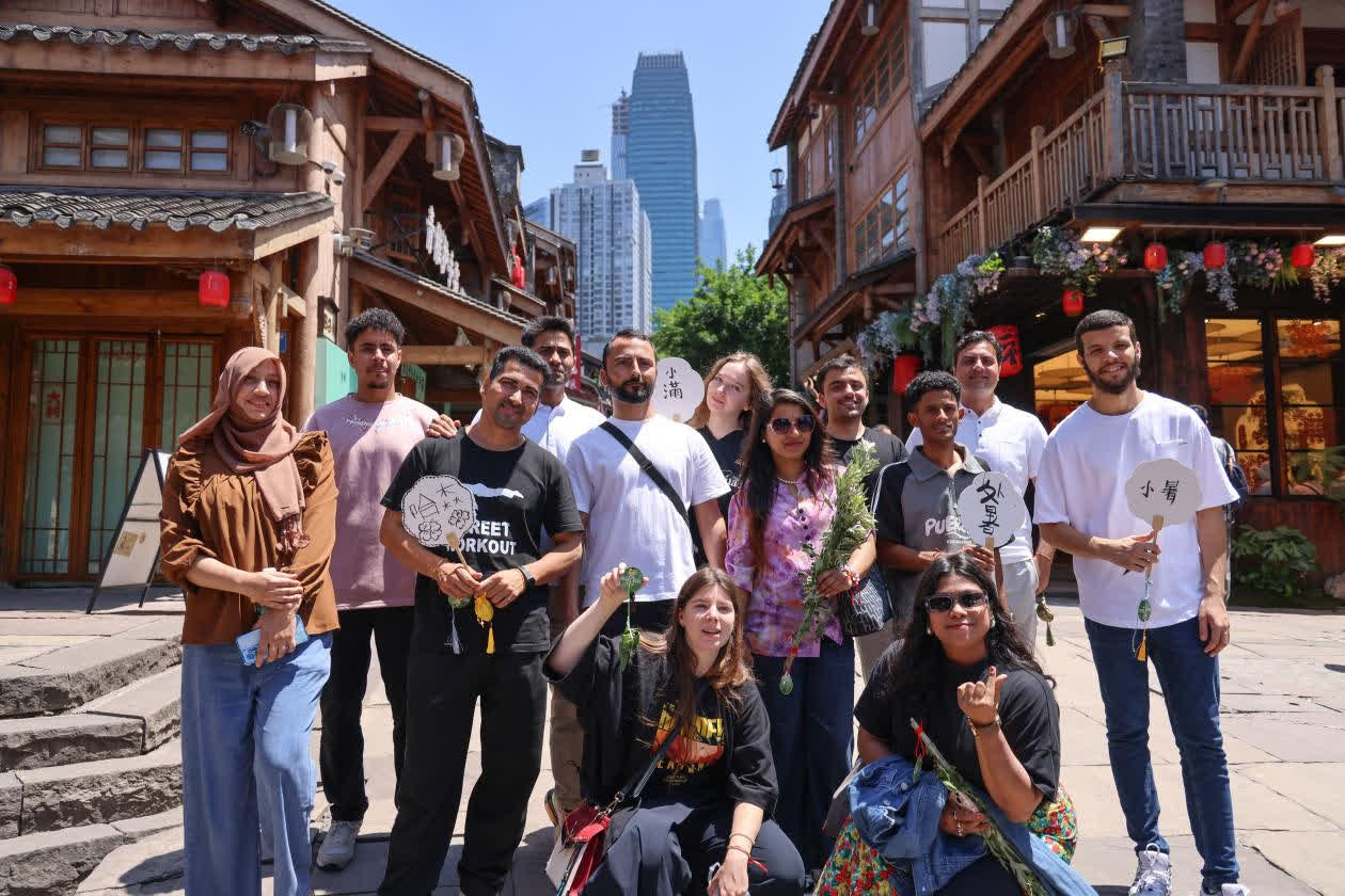 而一旁的老茶館裏,蓋碗茶的清香悠然飄散。沱茶、花茶、綠茶在蓋碗中舒展,留學生們學着地道的重慶人「刮碗」品茗,在茶香氤氳中體會那份「一壺清茶,半日閑適」的巴渝慢生活真味。