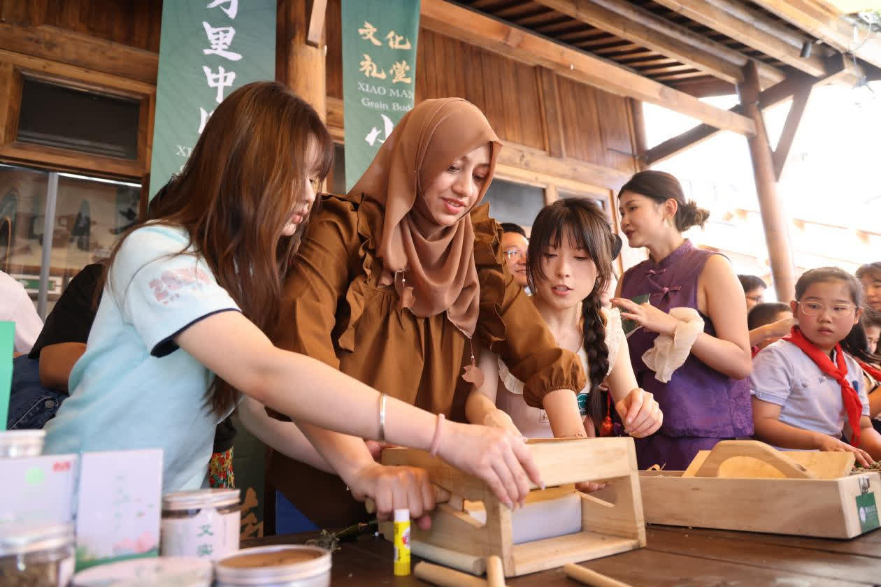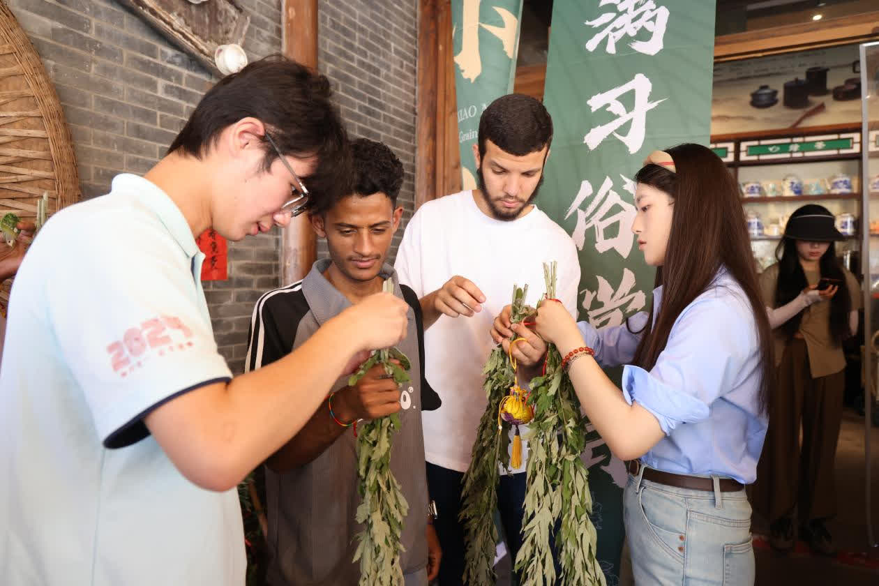 「這是什麼味道?有點特別,但聞起來很舒服!」俄羅斯留學生小孟拿起一枚精巧的艾草香包,輕嗅着那清冽特別的香氣,不禁發問。原鄉小艾創始人陳平笑着解釋:「這是端午的『守護香』——艾草。掛艾草、佩香囊是端午的重要習俗,寓意驅邪避穢,祈福安康。」在小滿時節暑氣漸升、蚊蟲滋生的背景下,留學生們在陳平指導下親手縫製香包,填充艾草碎末,再用五彩絲線纏繞出吉祥圖案。他們紛紛讚嘆:「這不僅是驅蟲良方,更是精美的中國藝術品!」