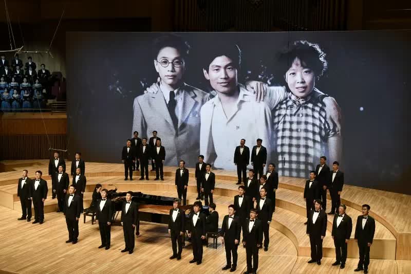 值得關注的是,音樂會以《閃光的記憶》為主題音樂,鋼琴演奏貫穿全場,串聯朗誦與歌聲;由四個合唱團組成的近三百人合唱陣列,年齡跨度達80年,在指揮下共同演繹蕭紅「心系蒼生」的赤子情懷。尾聲時刻,AI修復技術重現的蕭紅生前影像與三代「蕭紅」扮演者隔空呼應,黑白影像中她溫暖的微笑引發全場共鳴,完成一場跨越時空的文學對話。