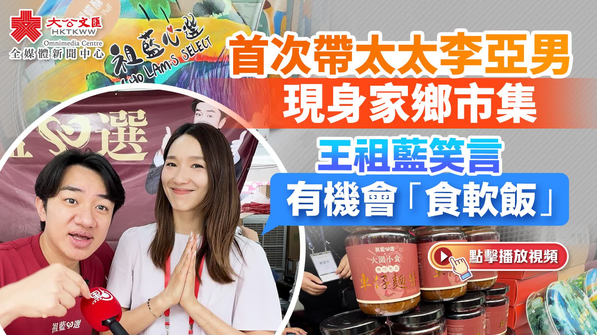 (大公文匯全媒體記者 王俊傑)由多個省級同鄉社團聯合主辦的第三屆同鄉社團家鄉市集嘉年華今日(6月1日)起,一連五日在維園舉行,一向是家鄉市集常客的藝人王祖藍更加帶同太太李亞男,首次在現場「擺檔」,售賣自家製曲奇,誓言要大賣特賣,「食軟飯」。