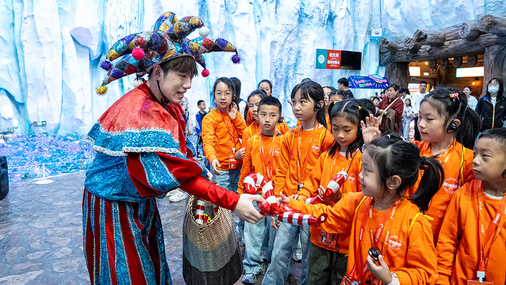 「童趣六一」系列主題活動成為大小朋友們的快樂源泉。冰川情景劇「六一」專場驚喜上演,淘學企鵝、北極熊、海豹等極地動物明星人偶帶領小朋友們開啟沉浸式極地奇幻冒險旅程;「喜狼公主」「海盜船長」等極地NPC輪番登場,派發氣球、熱情互動,漫天飛舞的泡泡下,現場歡聲笑語不斷。金剛鸚鵡成為合影焦點,限量手工極地動物餅乾秒變「搶手貨」,家長們笑言:「孩子玩得捨不得走!」