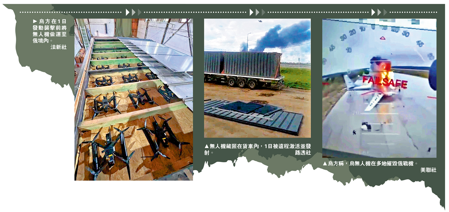 •烏方稱,旨在摧毀俄軍用機場內戰略轟炸機的「蛛網」特種作戰行動策劃耗時一年半,是深入俄境內最遠的一次行動。俄方證實,伊爾庫茨克、摩爾曼斯克等地1日遭烏克蘭無人機襲擊,前者距離烏東前線數千公里。