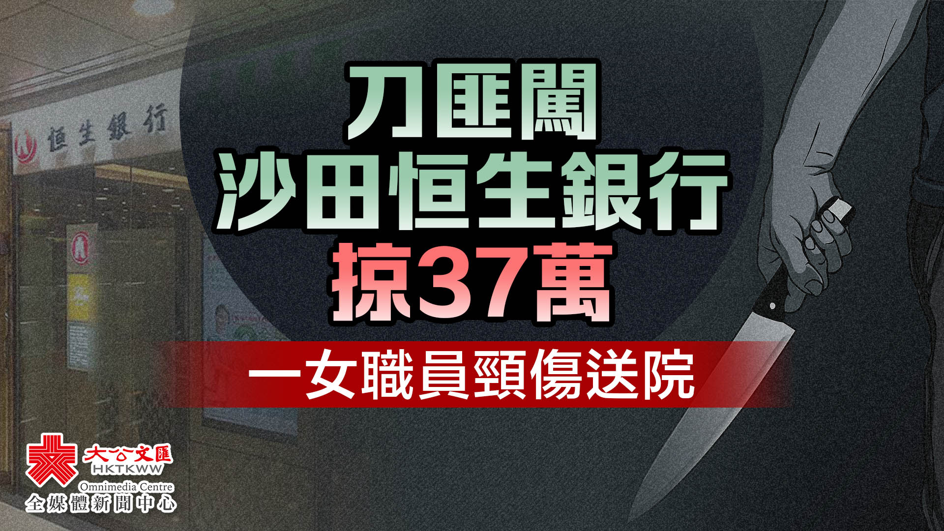 案發於昨日下午約5時12分,警方接獲沙田置富第一城商場恒生銀行職員報案,指一名男子亮起一把約30厘米長的餐刀指嚇職員,掠走共值約38.2萬港元的人民幣、美金及港幣後,逃去無蹤。事件中,銀行一名35歲姓方女職員頸部受傷,即場接受救護員治理後,清醒由救護車送往沙田威爾斯親王醫院救治,其頸部近喉嚨位置貼上膠布。