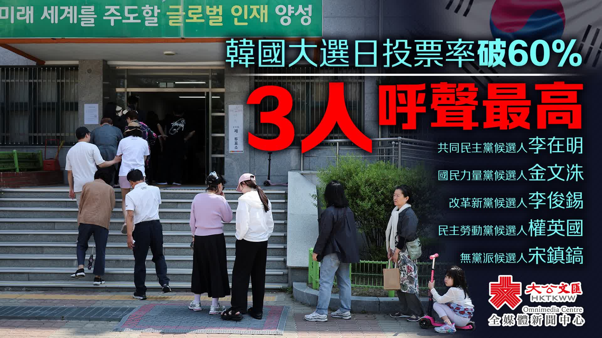韓國社會輿論研究所同日發布的民調結果顯示,李在明支持率為49.3%,領先金文洙12.7個百分點。