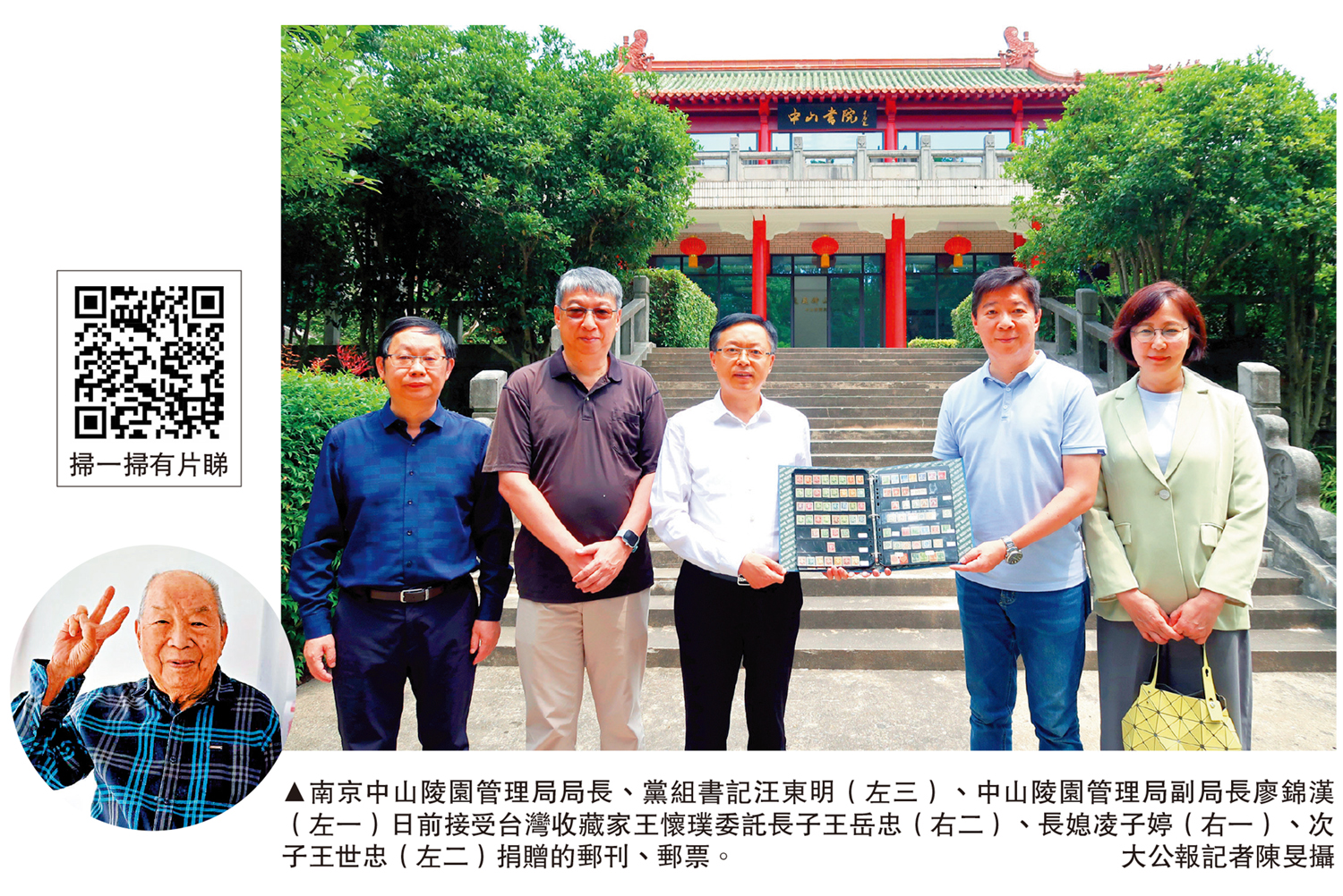 (大公報 記者 陳旻 南京報道)經過大公報記者先後3個月的奔走,台灣百歲收藏家王懷璞花費近半世紀心血收藏的逾千冊歷史郵刊郵票,最終確定受贈方為南京市中山陵園管理局,由其下轄孫中山紀念館對接。
