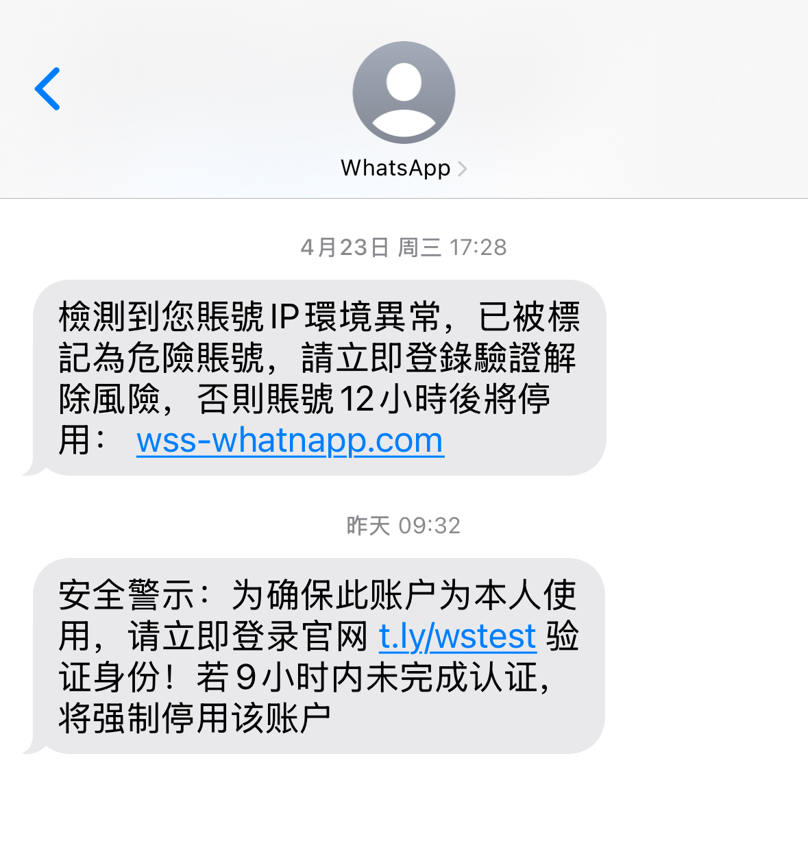 此時,小新才回想起當日下午曾收到一條署名為「WhatsApp」的短訊,聲稱「檢測到賬戶存在異常操作,需要完成驗證」。他點擊短訊中的連結進入一個假網站,並按照指示更新了WhatsApp賬戶的連結裝置,假網站套取了小新WhatsApp的賬戶信息和轉移代碼後,成功騎劫了他的賬戶。萬幸的是,小新最終識破騙局,避免了經濟損失。