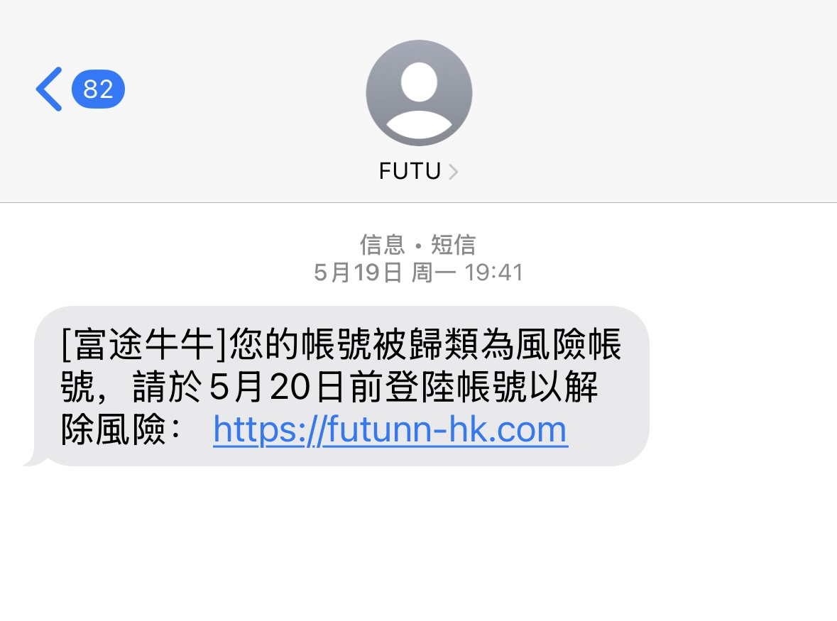 香港正規機構發出的短訊通常以「#機構名稱」開頭(如#FUTU)。若開頭為「+852」或無任何標記,極可能為詐騙訊息。