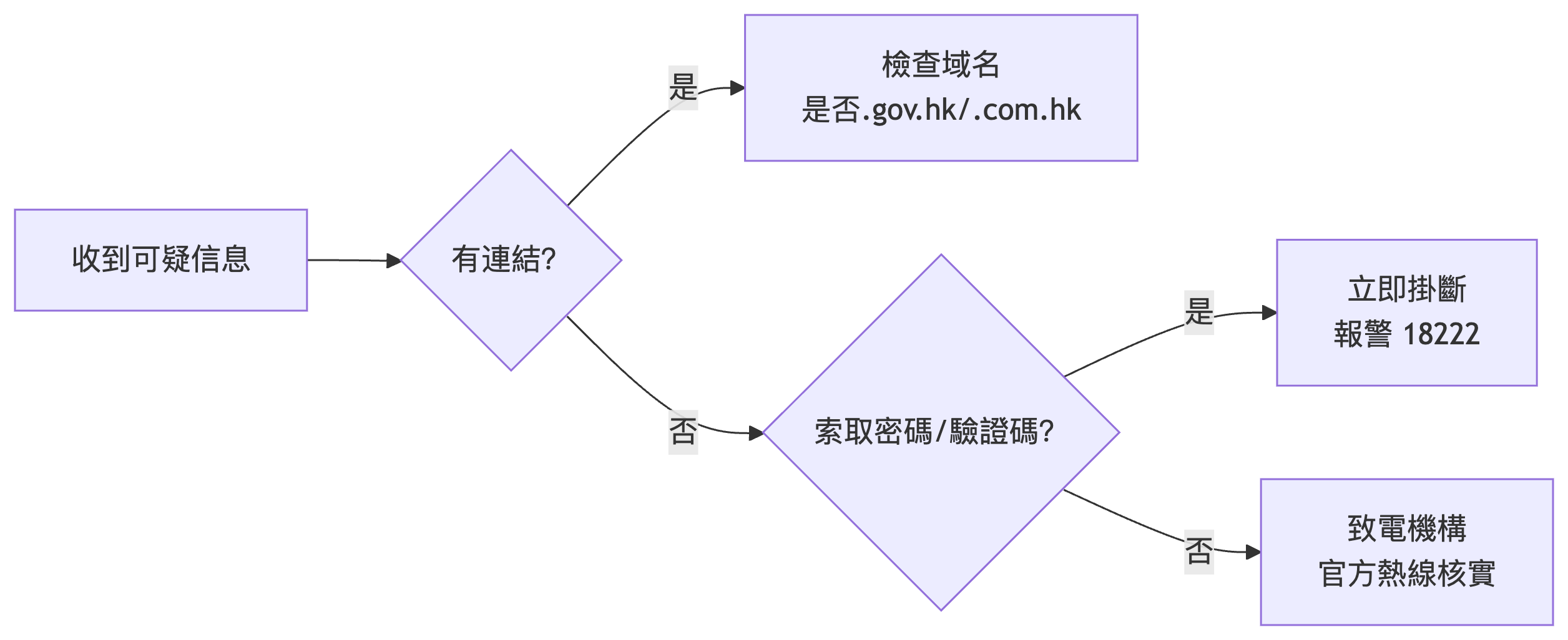 · 對所有來歷不明的短訊、連結、二維碼保持高度警惕。