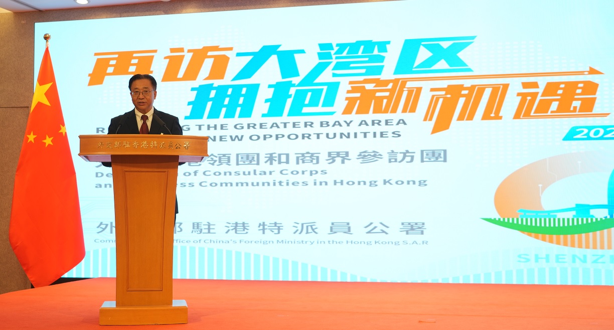 崔建春說,建設粵港澳大灣區是習近平主席親自謀劃、親自部署、親自推動的重大國家戰略。近年來,大灣區經貿、科創領域成果不斷湧現,規則銜接、機制對接縱深推進,正朝着國際一流灣區和世界級城市群的目標大步邁進。在大灣區發展中,香港既是參與者、貢獻者,也是受益者。香港憑藉諸多獨特優勢,為加快大灣區建設提供了有力支持,大灣區廣闊腹地也為香港經濟發展提供了堅實支撐。外交公署願繼續發揮外交所長,支持外國在港各界拓展大灣區商機、更好共享中國發展紅利。期待參訪團成員通過此訪感知大灣區開放創新活力,歡迎各國擴大與大灣區投資合作,共享發展機遇。