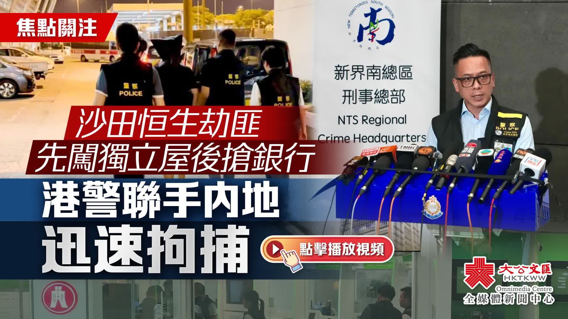 大公文匯全媒體報道,沙田置富第一城商場恒生銀行前日(2日)遇劫,一名劫匪持一把約30厘米長的餐刀闖入銀行,以刀架頸挾持銀行女職員,掠走人民幣、美金及港幣等價值38.2萬港元的鈔票,女職員受傷被送往醫院治理。警方在社交平台公布,就此案已拘捕一男一女。警方新界南總區刑事部(行動)警司姚永勤於昨日(3日)晚上10時進行案情簡報。