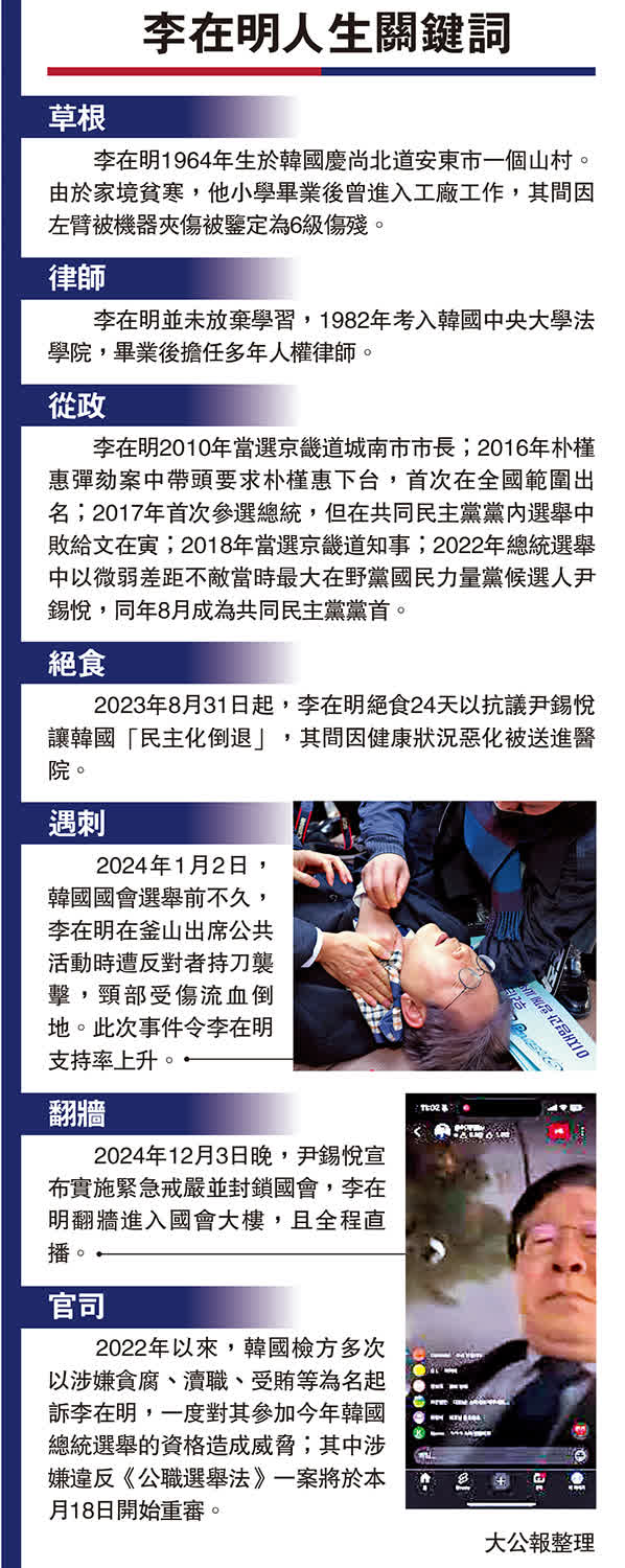 李在明面臨多項指控,包括貪腐、違反《公職選舉法》等。韓國最高法院上月推翻李在明涉違反《公職選舉法》一案的二審無罪判決,並將二審重審首次開庭日期推遲至總統選舉之後的6月18日。如今,共同民主黨主張現任總統享有免於起訴的權利,各項訴訟都應該推遲至李在明5年任期結束後;李在明的反對者則認為這項豁免權不能延伸至正在進行的訴訟,並批評李在明以選舉為擋箭牌。