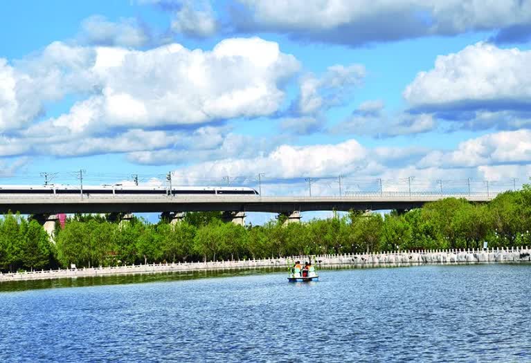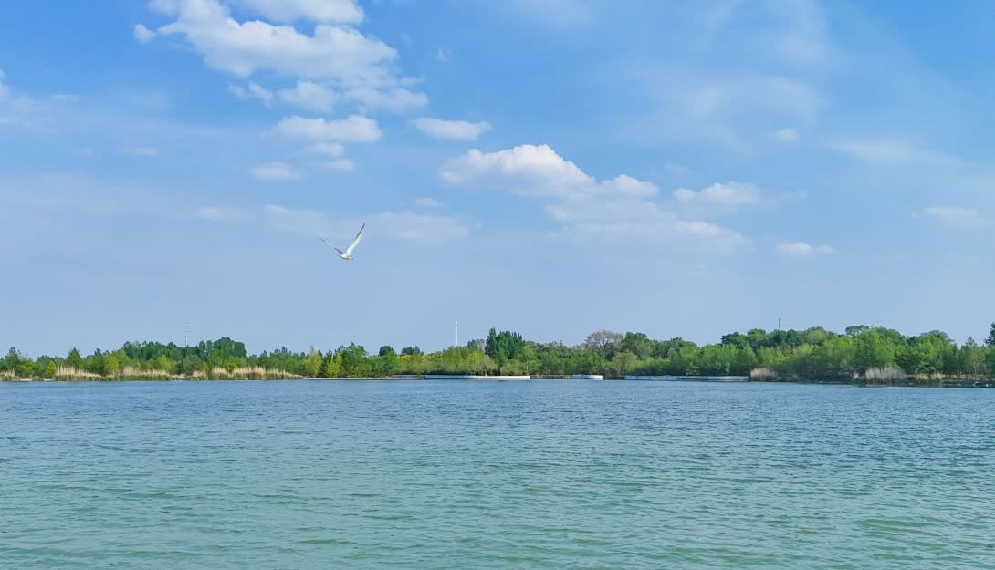 夏日的烏蘭察布,湛藍天空下,蔥鬱樹木與清澈水域相映成趣,各公園與水域迎來蹁躚候鳥,勾勒出人與自然和諧共生的生態圖景。