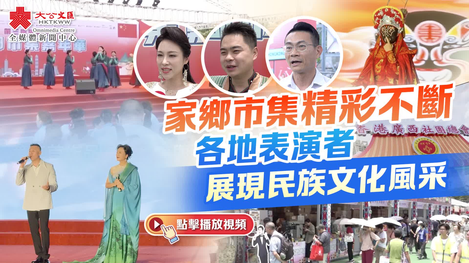 (大公文匯全媒體 記者 周禹含)「第三屆同鄉社團家鄉市集嘉年華」每日都熱鬧非凡,6月3日及4日均有精彩演出接連登台,帶來風格多樣的視覺盛宴。來自廣西、雲南的表演嘉賓,以及本港四川變臉及魔術表演藝術家今次均帶來精彩節目,將極具民族風情的藝術風格帶給觀眾。