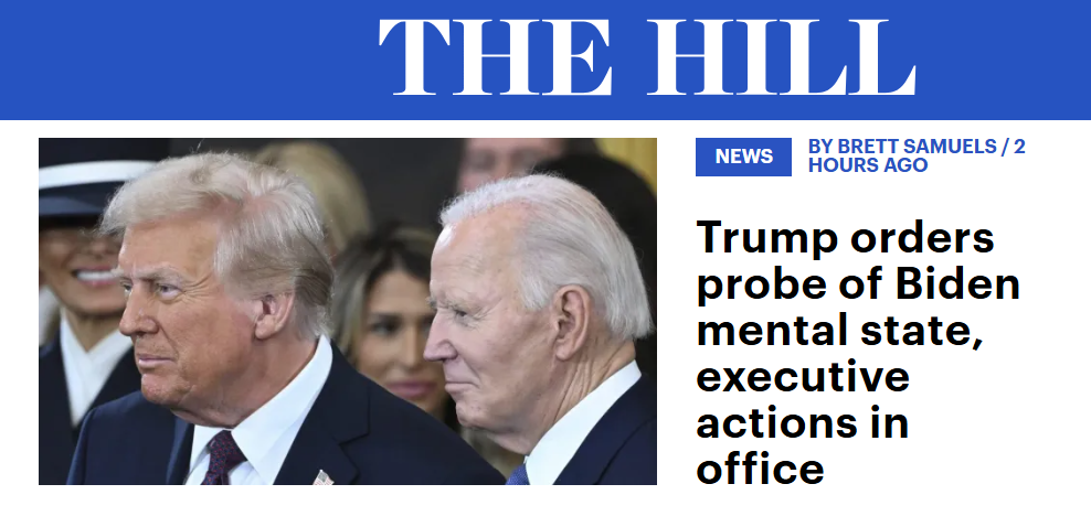 據美國國會山報報道,美國總統特朗普當地時間4日下令對美國前總統拜登的行為展開調查,理由是人們對拜登任期末期的認知狀態提出質疑。