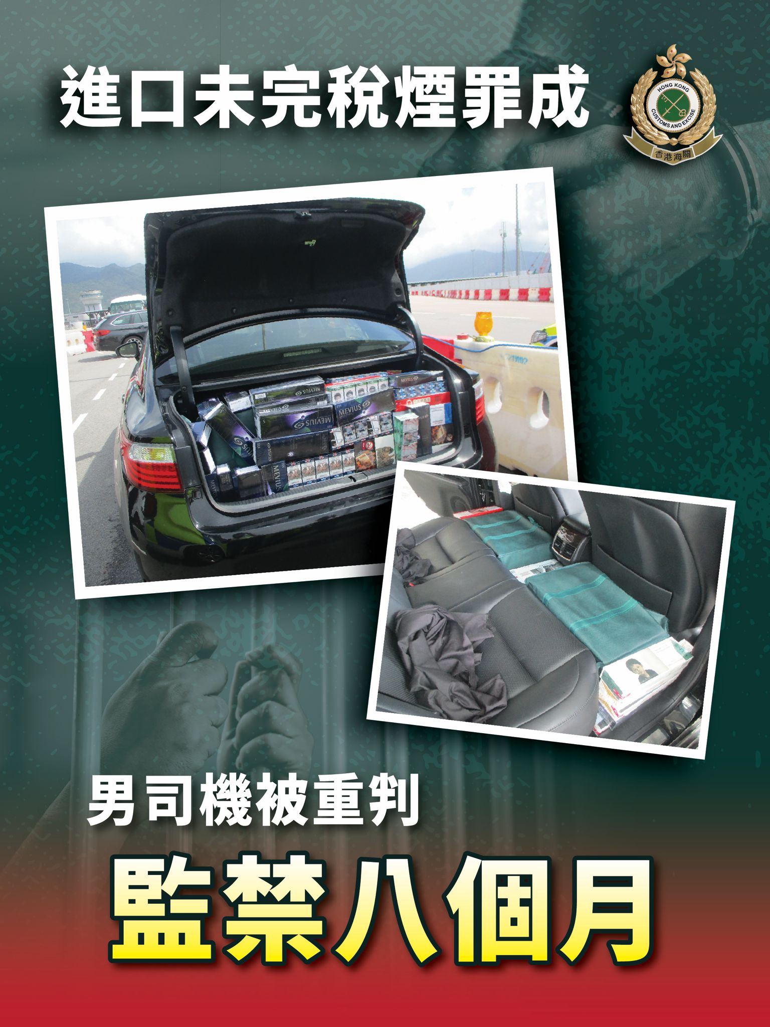 第一宗案件中,一名五十八歲男子因進口未完稅香煙,於五月三十日在西九龍裁判法院被判處監禁八個月。