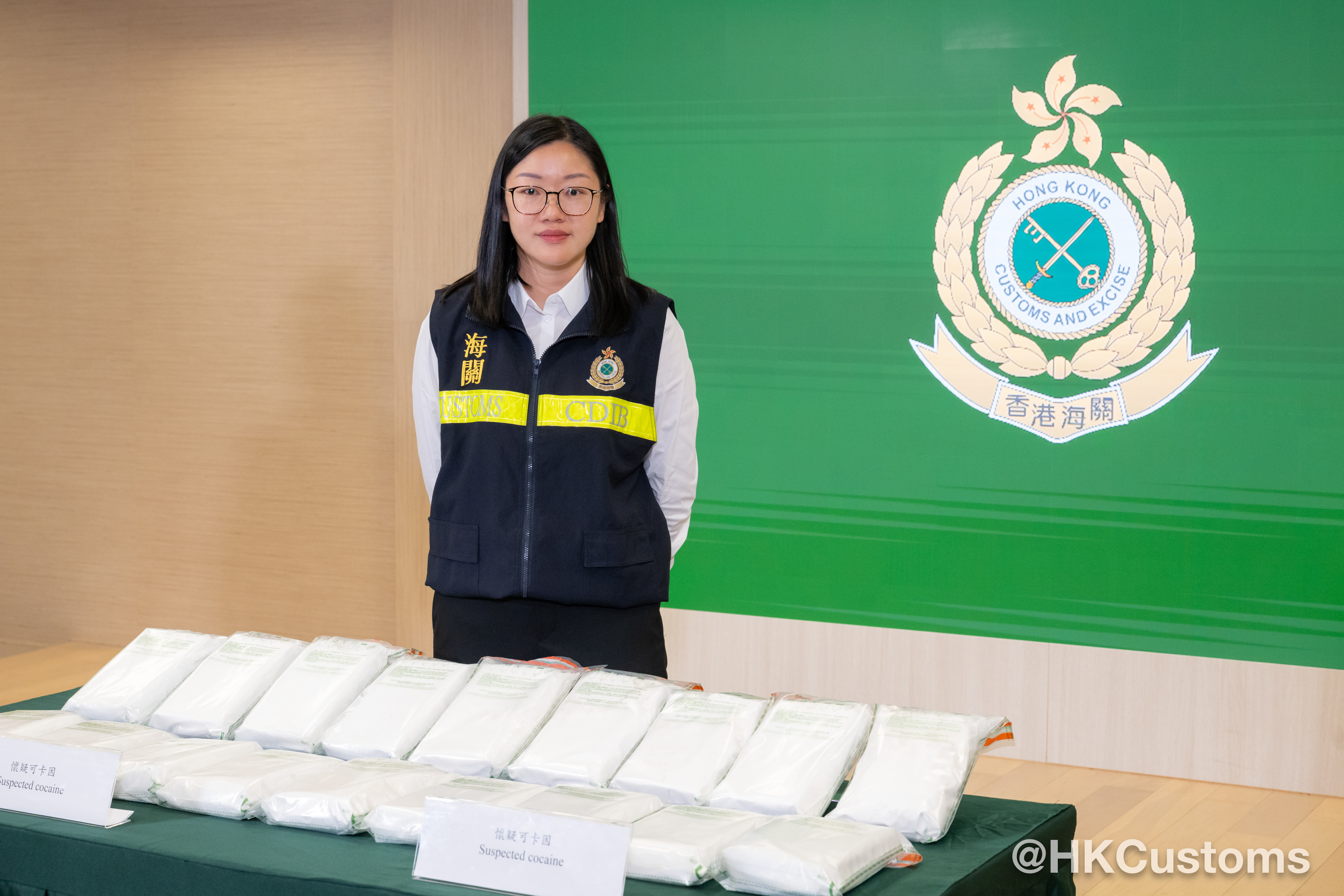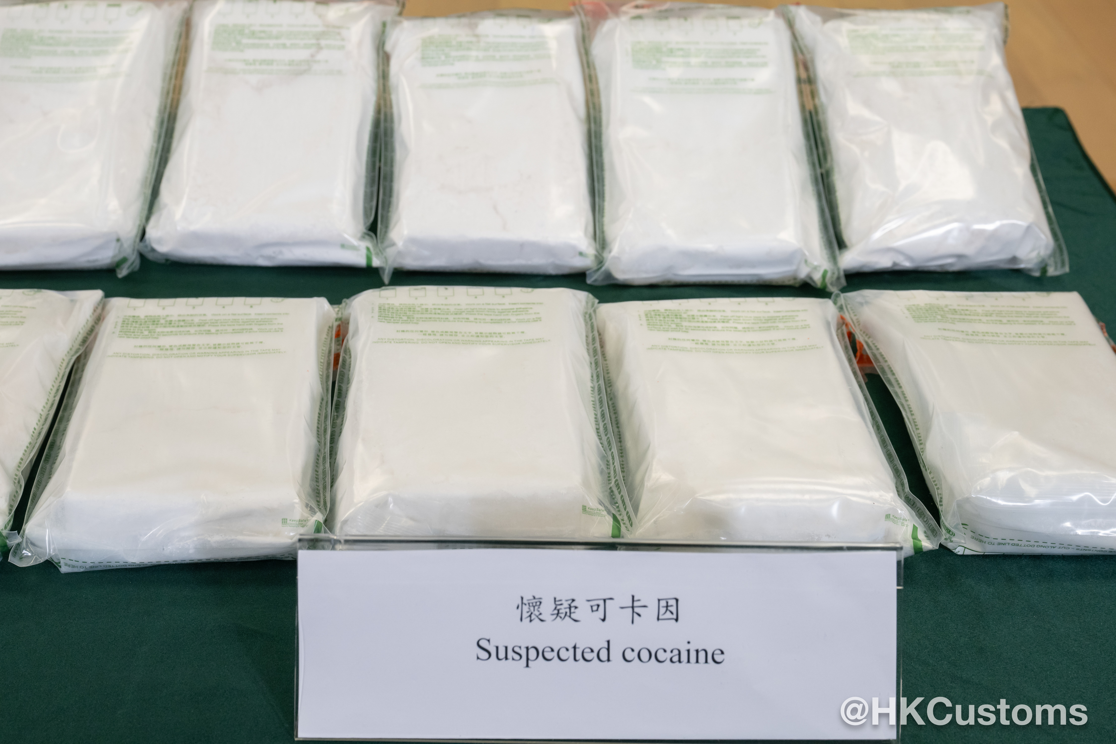 一名二十二歲的男旅客及一名十六歲的女旅客六月一日從南非約翰內斯堡飛抵本港。海關人員替他們進行清關時,在他們的手提行李內發現十八包共約十八公斤的懷疑可卡因,遂把二人拘捕。案件仍在調查中。