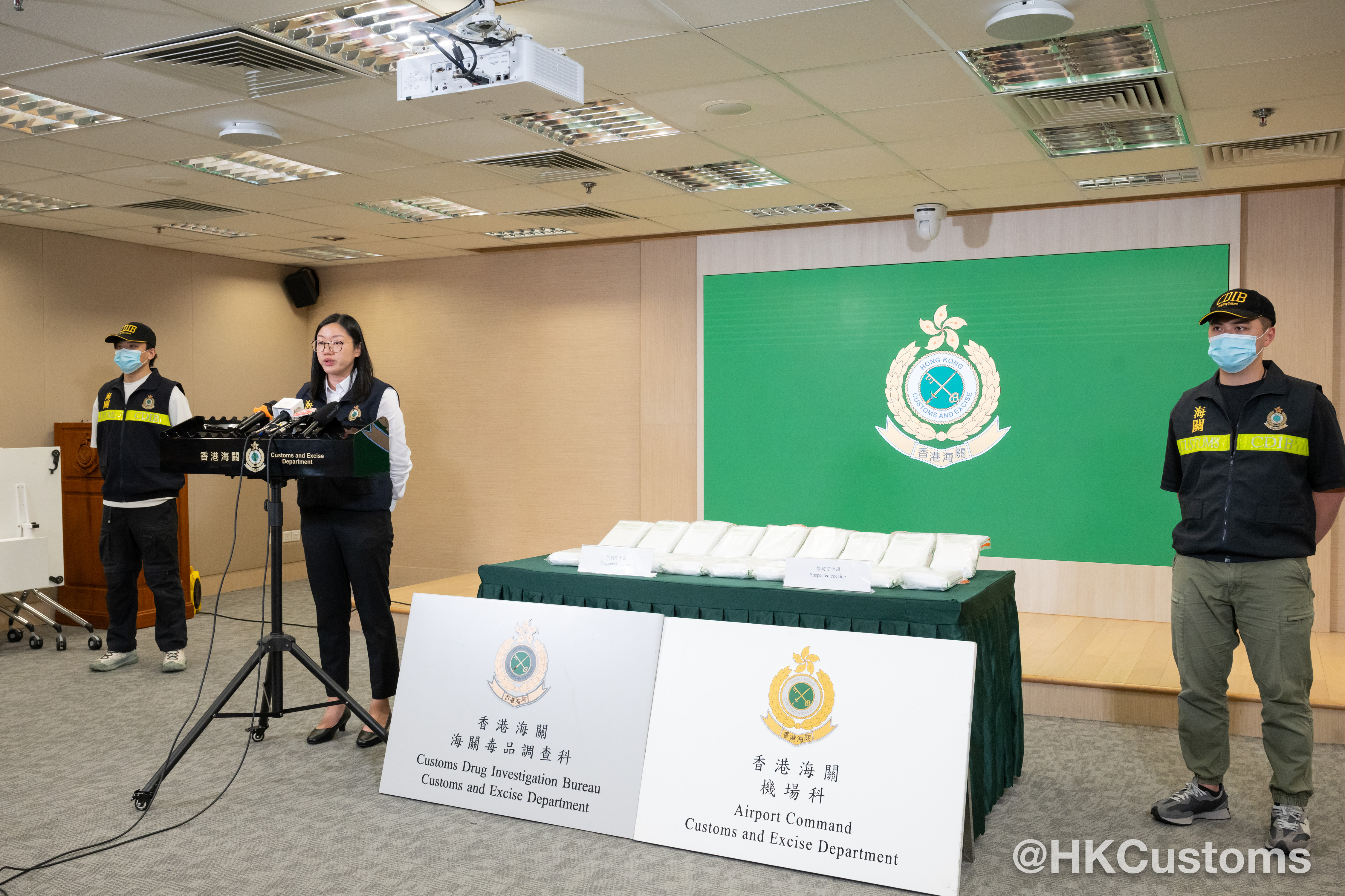 香港海關六月一日在香港國際機場破獲一宗旅客販運毒品的案件,檢獲約十八公斤懷疑可卡因,估計市值約一千五百萬元,並拘捕一男一女。