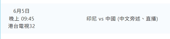 根據官方公布,同此前預選賽一樣,央視不轉播,內地直播平台則有愛奇藝及咪咕視頻兩家。香港球迷可以免費睇,港台電視32將直播今場賽事。