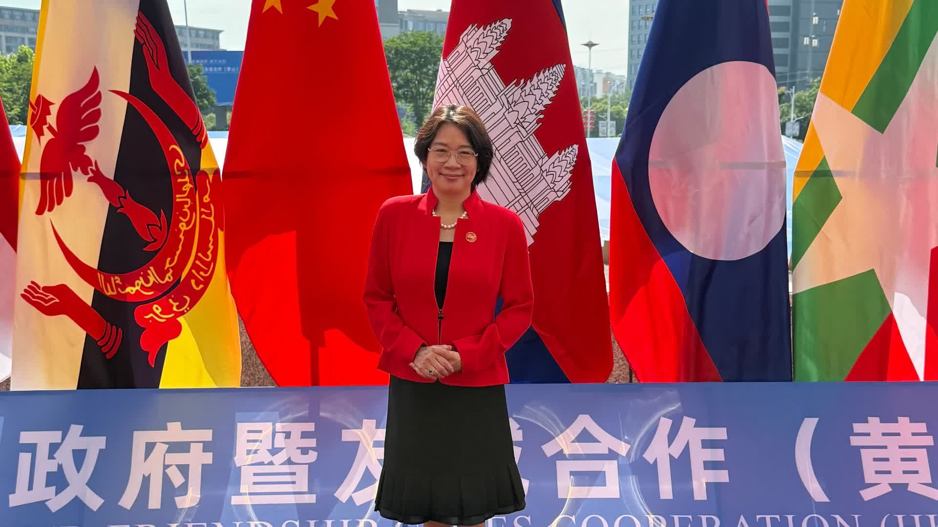 發言時,梁美芬向RCEP成員國介紹香港「一國兩制」的優勢及近日宣布成立的國際調解院。