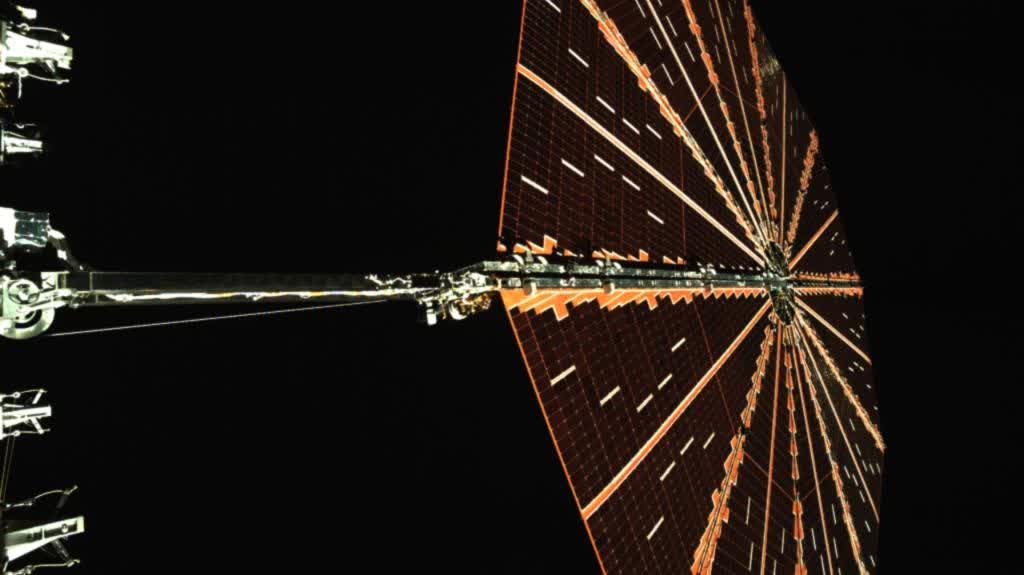 (大公文匯網 劉凝哲 北京報道)記者從國家航天局獲悉,截至6月6日上午,天問二號探測器已在軌運行超8天,與地球距離超300萬千米,工況良好。為滿足在距離太陽約3.75億千米的主帶彗星開展探測的供電需求,天問二號探測器研發配置了圓形柔性太陽翼。國家航天局今日還發布了天問二號探測器傳回的圓形太陽翼展開的圖片。