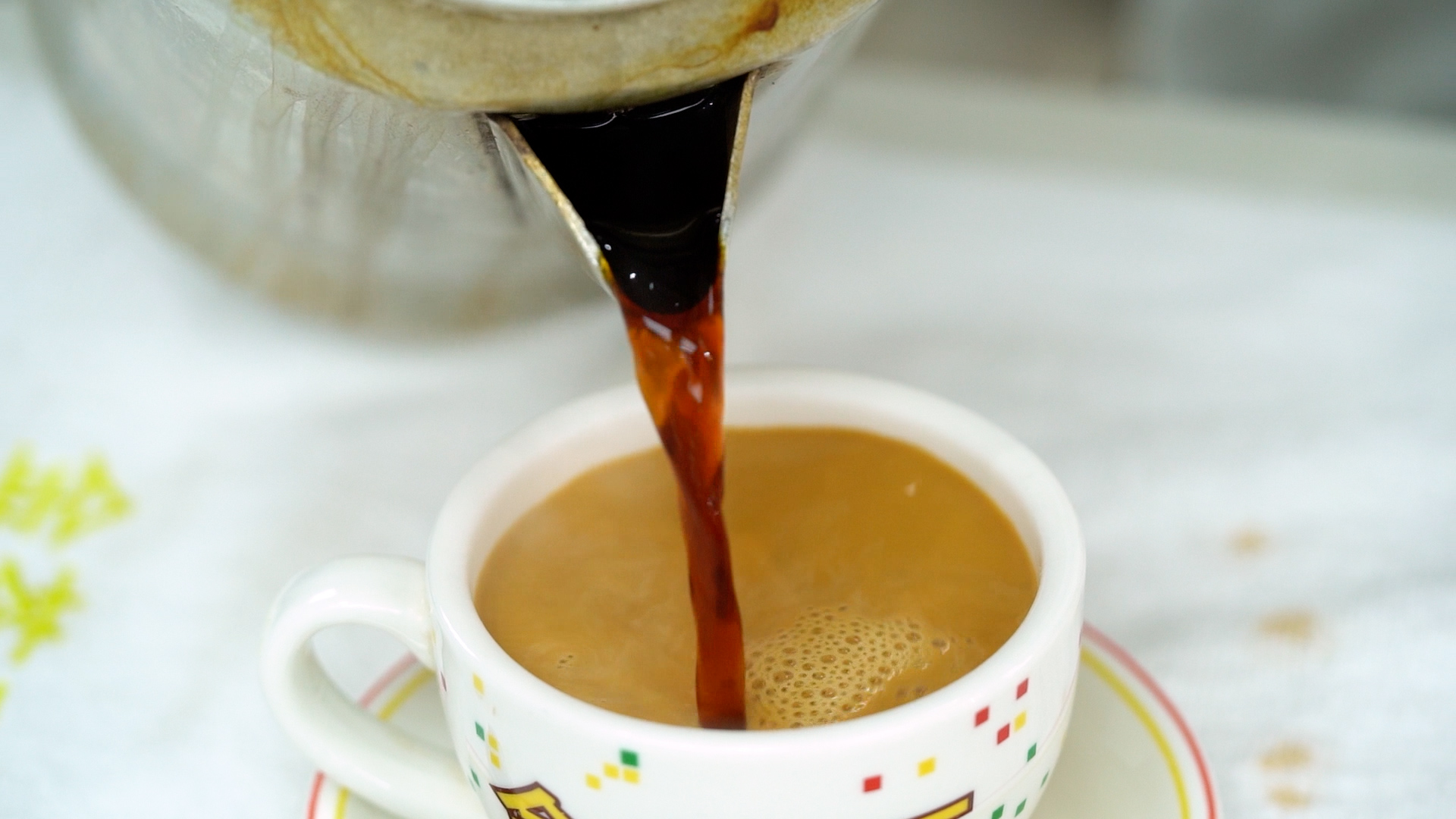 至此,一杯濃郁可口的港式奶茶,來到茶客面前。