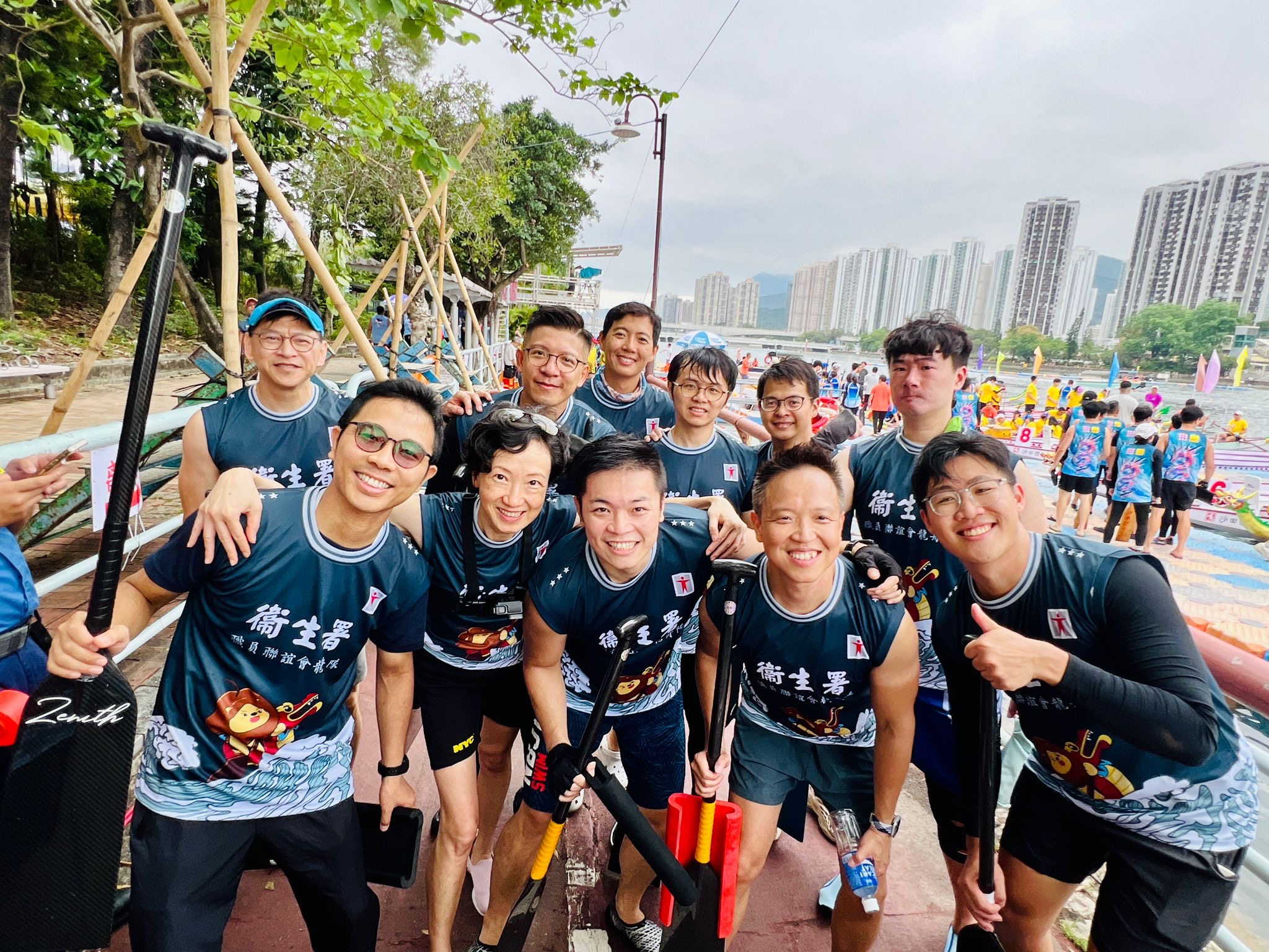 當日共有近30名衞生署同事參與三場賽事,隊員來自不同專業,包括醫生、牙醫、護士、藥劑師、言語治療師、中藥主任等。槳手們在鼓手激昂的節奏指揮下,齊心協力,全力劃向終點,氣氛熱烈。