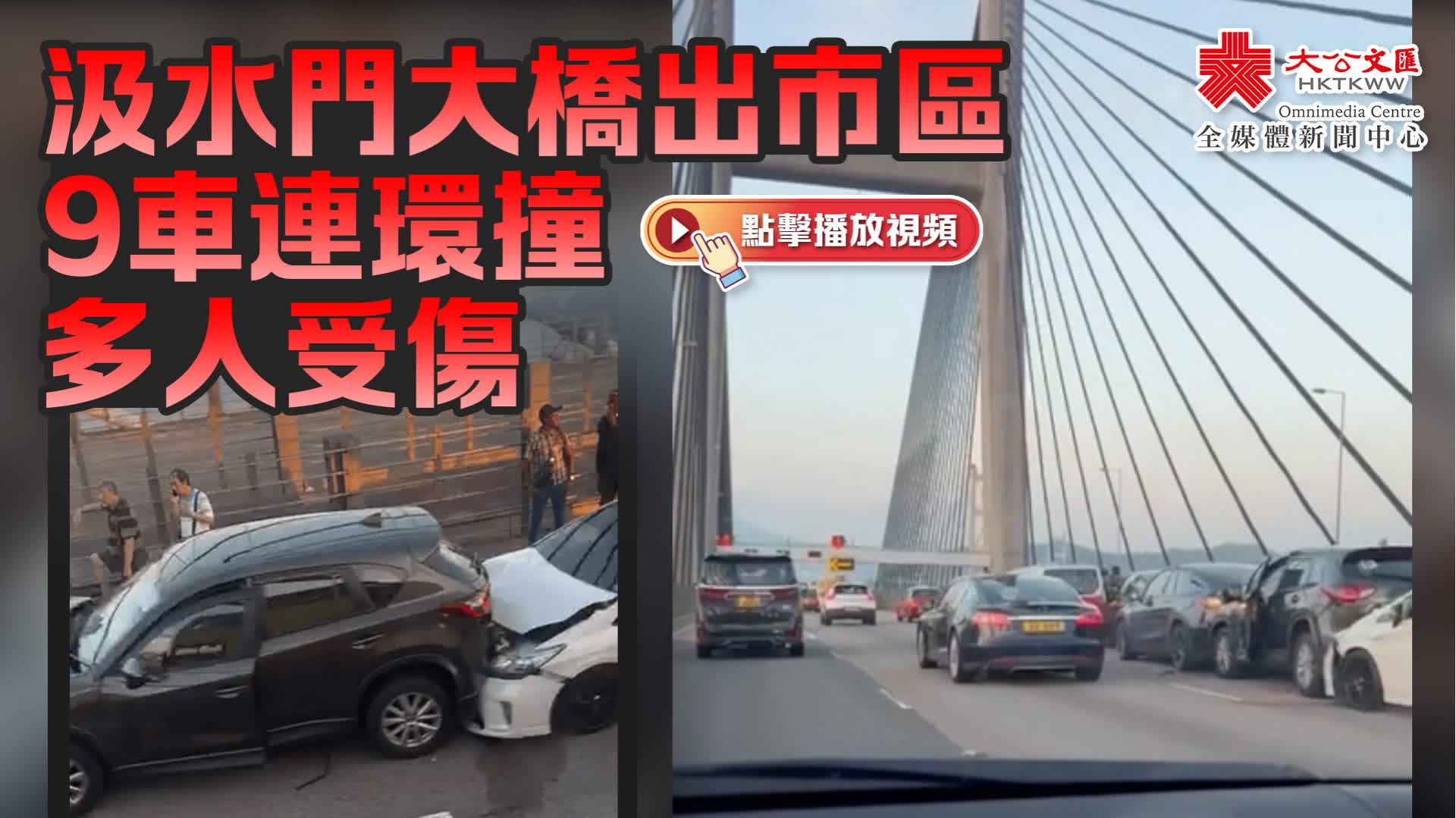 大公文匯全媒體報道,今日(6日)下午6時許,青嶼幹線汲水門大橋九龍方向發生9車連環相撞事故,牽涉4輛的士及5輛私家車。事故造成多人受傷,傷者分別被送往仁濟醫院及瑪嘉烈醫院救治,事故原因仍在調查中。