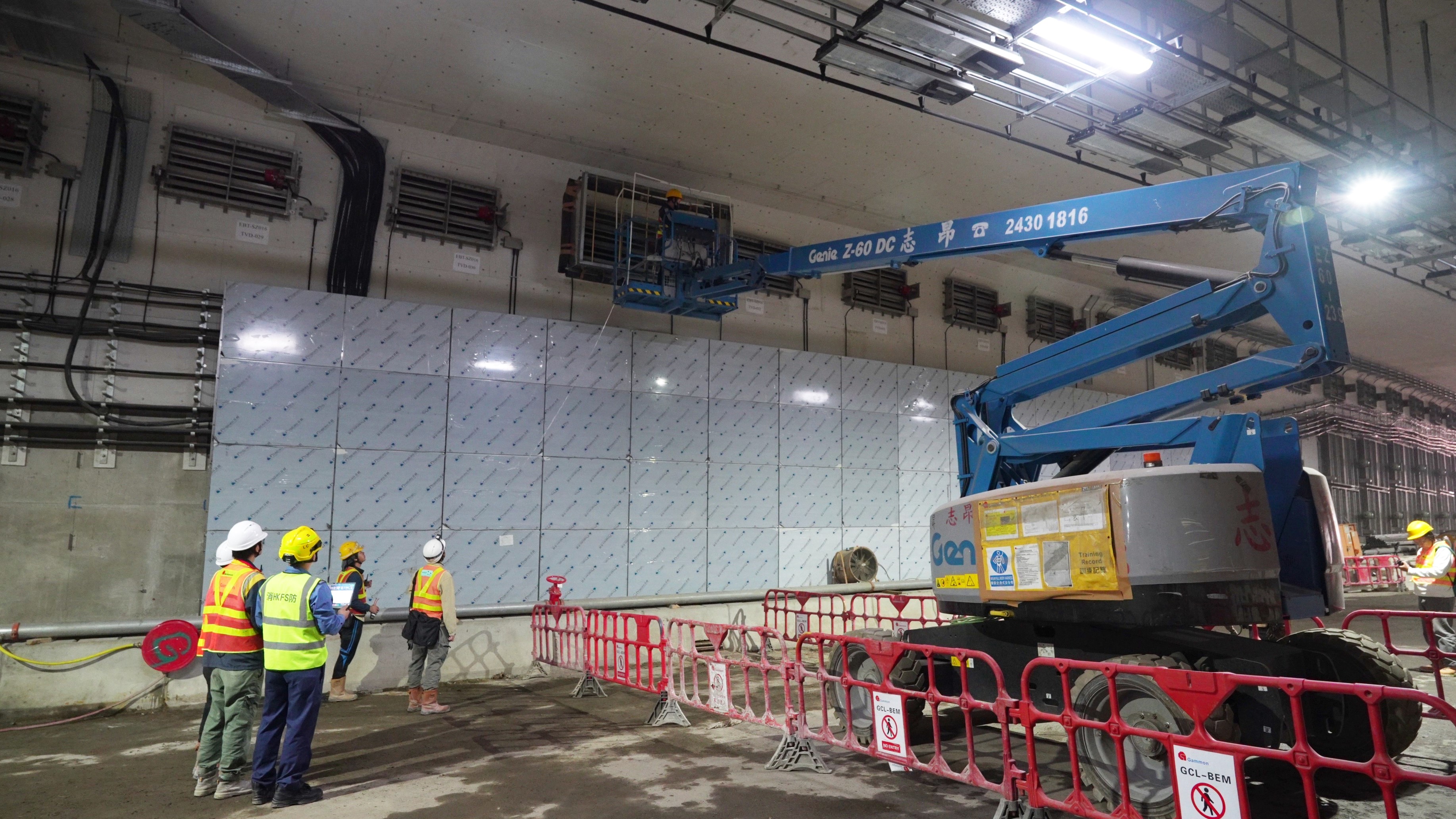 項目的隧道、連接路及隧道大樓結構工程均已完成,工程團隊正密鑼緊鼓進行機電設備安裝及系統測試工作,並與消防處攜手推動創新,成功研發全港首套「垂直風罩測量設備」,快捷及準確地測量隧道緊急排煙系統內逾百個垂直防煙閘的風速,較使用傳統「熱線式單點風速計」節省高達65%測量時間,提速提效,優化及加快消防設施的驗收流程。