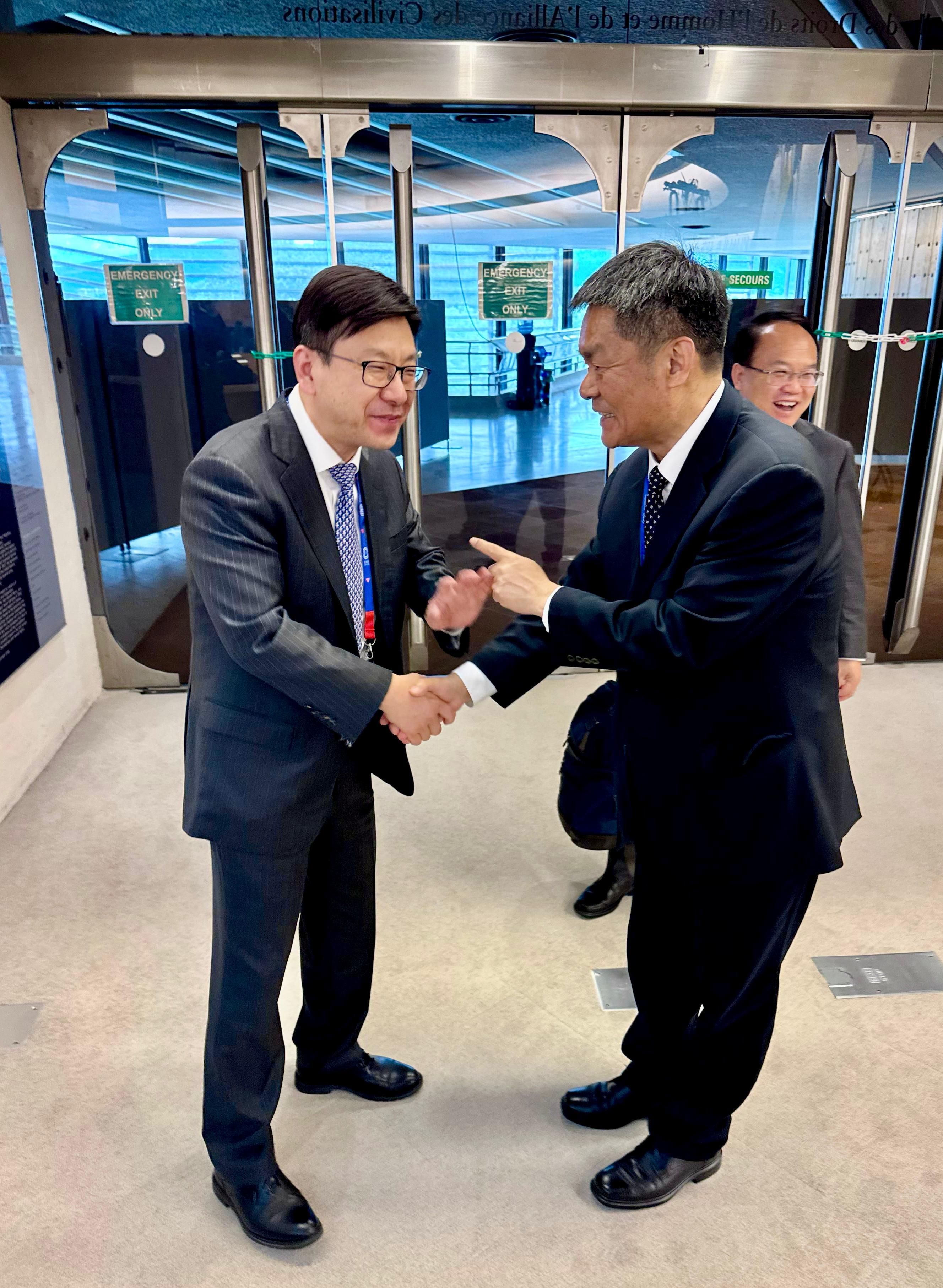 孫玉菡一行亦先後與吳秀章及中華人民共和國常駐聯合國日內瓦辦事處和瑞士其他國際組織代表團特命全權大使、常駐代表陳旭等國家高層官員交流,並向中國代表團勞資政三方代表介紹香港在深化勞工權益保障以及加強規管職工會以維護國家安全等方面的工作。孫玉菡亦藉機會感謝中央政府一直以來對香港特區政府的支持。